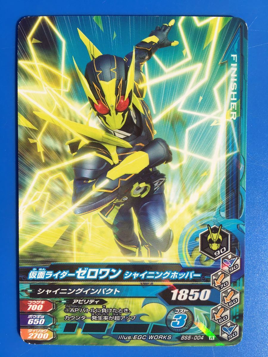 仮面ライダー、ガンバライジング・第BS5弾からNo.004《仮面ライダーゼロワン・シャイニングホッパー》の登場です。発送は、普通郵便を利用します。(特にご希望のない場合)おとりまとめも可能ですが、送料に変動する場合がございます。また、送料のご請求は、自宅での計量を基準にご請求させていただいておりますので、実際の金額と差異が出る場合もございます。予めご了承ください。他にも多数出品中です。まとめてこの機会にいかがでしょうか?ご質問お待ちしております。