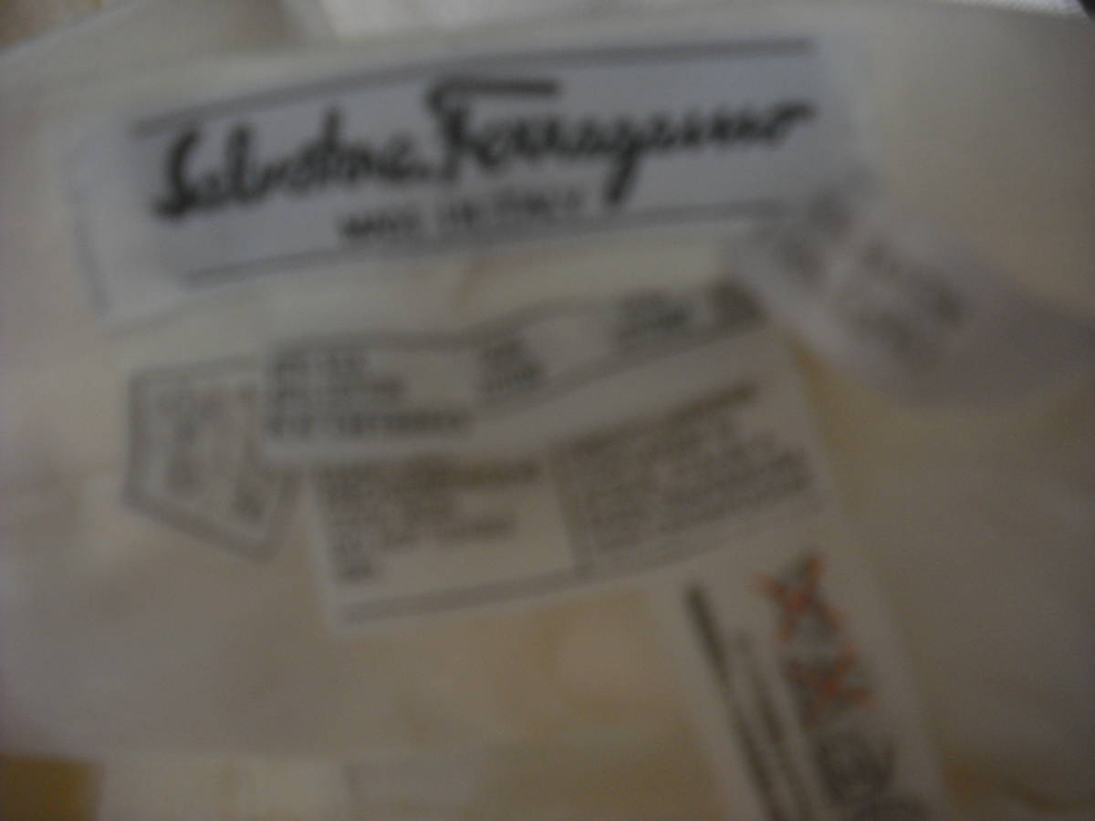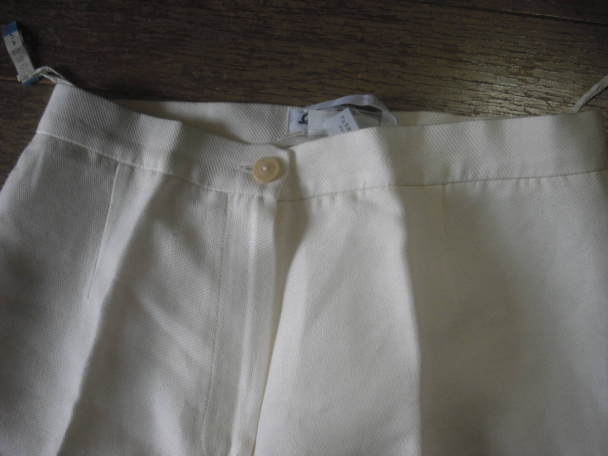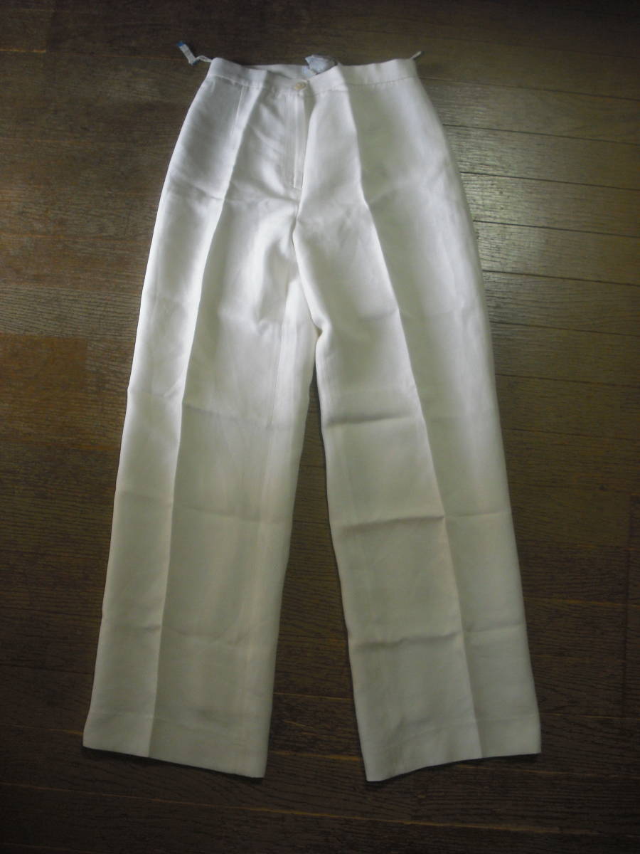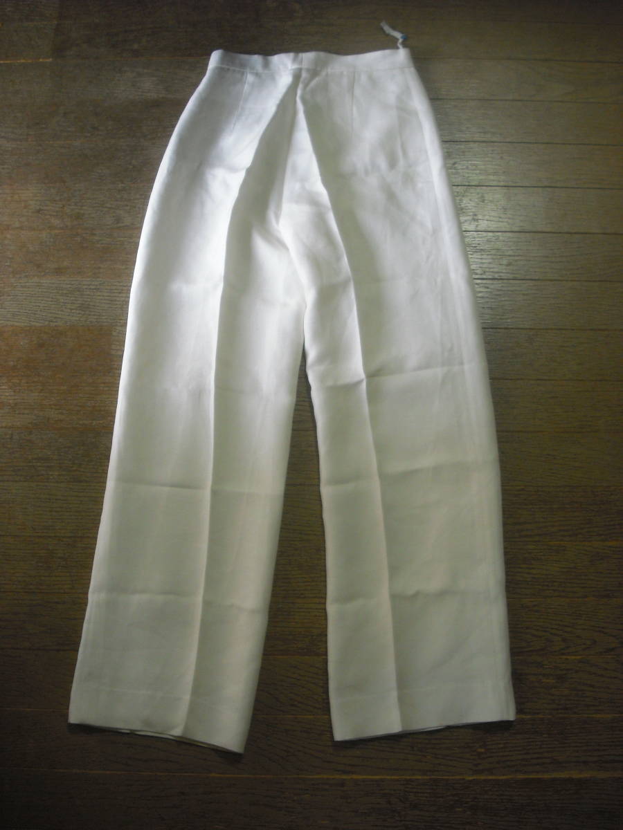 写真のような薄手のパンツになります。 前ボタン1個、ファスナーあり。 ポケットなし。 サイズはI:40、US:6、F:38、D:36 SILK60% COTTON40% フェラガモ・ジャパン(株) おおまかですが・・・着丈100cm、股上33cm、一番上の縁に沿った身幅32cmくらいです。 写真の状態でメジャーで測っています。 私見ですが…お色はクリーム色っぽいです。 折りたたみ跡、線シワあり。 保管中の汚れ、畳みジワ、経年劣化、他商品と触れあっているため糸クズの付着などございますし、中古であり、個人所有になりますので糸のほつれ、汚れやスレなどの痛みがある場合もございます。 現状でよろしくお願いします。 約320g 簡易包装の定形外郵便500gかレターパックライトで発送予定です。 |