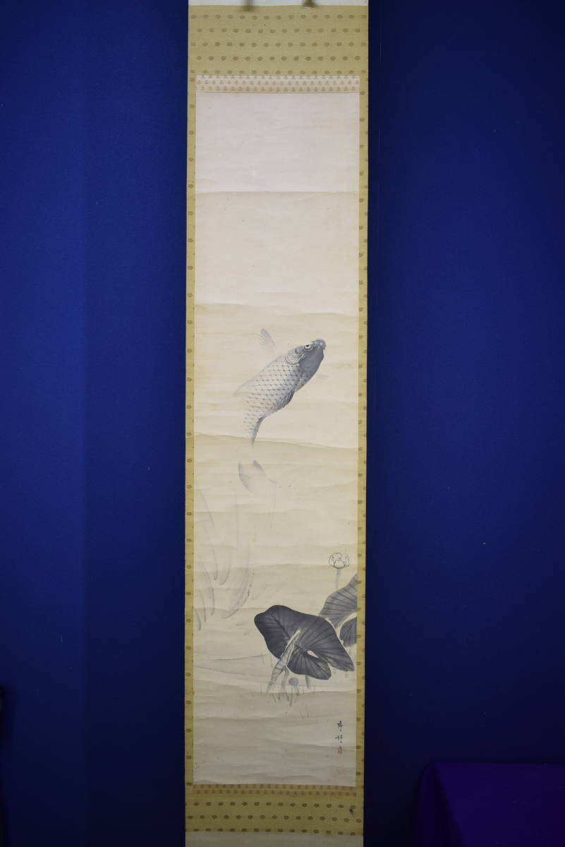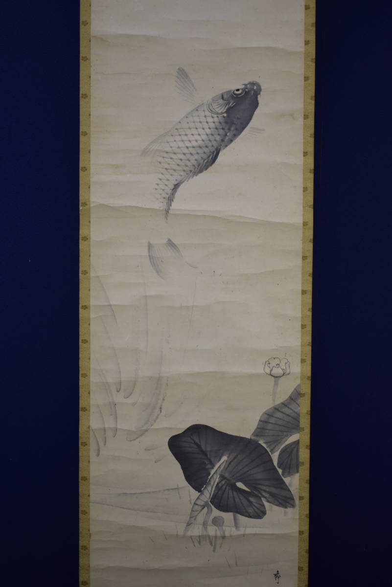 【真作】//秀好/跳鯉図/桐題箱付/布袋屋掛軸HH-656