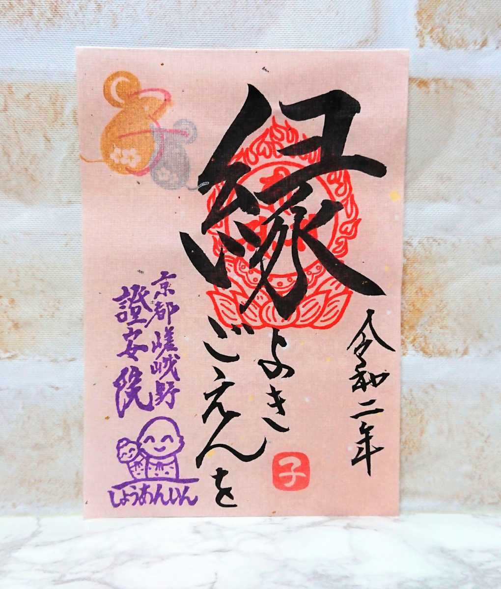 嵯峨野巡りの土産物の店の並ぶ中、白壁の土塀に囲まれた證安院は昔から「さつき寺」として有名です。山門の正面に誓阿上人の『南無阿弥陀佛』の名号石、本堂には雲に乗った来迎阿弥陀仏三尊仏をまつっています。浄土宗京都教区嵯峨組寺院27カ寺のひとつでもあり、観音様は洛西三十三カ所の第十六番札所になっています。寺宝として、お釈迦さまの涅槃図、浄土宗の名僧、山崎弁栄聖者筆の『無上尊』の額などがあります。二尊院や祇王寺を越えて、化野念仏寺に向かう道すがらに證安院はあります。小倉山のすそ野に竹林や田畑が広がるこのあたりは、昔はうっそうとした竹藪ばかり。昼間でも薄暗くて、ちょっと恐ろしいような場所でしたが、今では休日ともなると嵯峨野めぐりを楽しむ若者や、観光客で、さながらメインストリートのような賑わいをみせます。