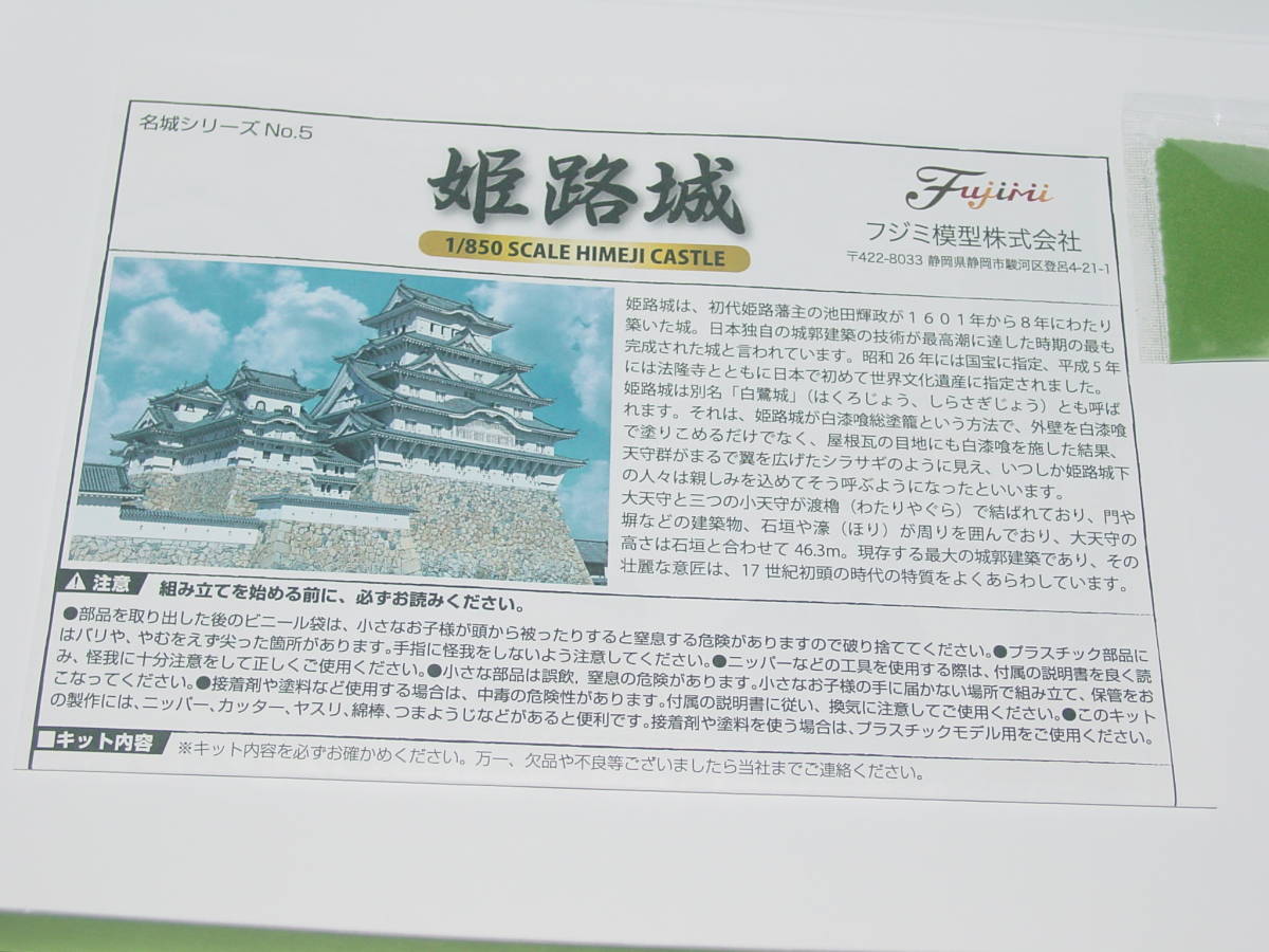 1/850 フジミ 名城時リーズ 5 「姫路城」、開始価格で即決いたします。新品ですが外箱のわずかな擦れ等がありましてもご容赦下さい。完璧な新品状態を望まれる方、神経質な方は入札をご遠慮下さい。発送方法は郵便局の定形外郵便(輸送中の事故補償及び追跡番号無し)または宅配便(ヤマト宅急便・佐川急便・ゆうパック、いずれも全額保証・追跡有り・対面手渡し)からお選びいただき、お知らせ下さい。定形外の送料は落札後にお知らせいたします。定形外に追跡番号が付けられる特定記録郵便は160円プラスとなります。宅配便の送料は自己紹介をご覧下さい。よろしくお願いいたします。