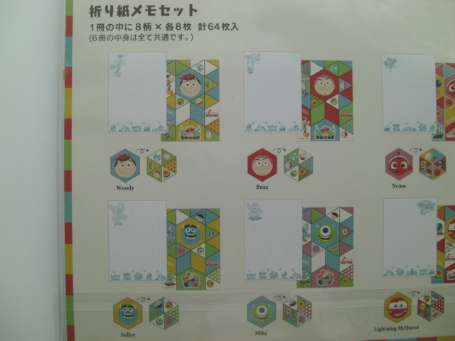 ディズニーリゾート 折り紙メモ ピクサープレイタイム2018 バズ ウッディ ニモ サリー マイク カーズ