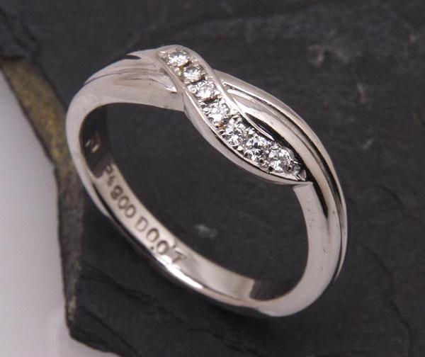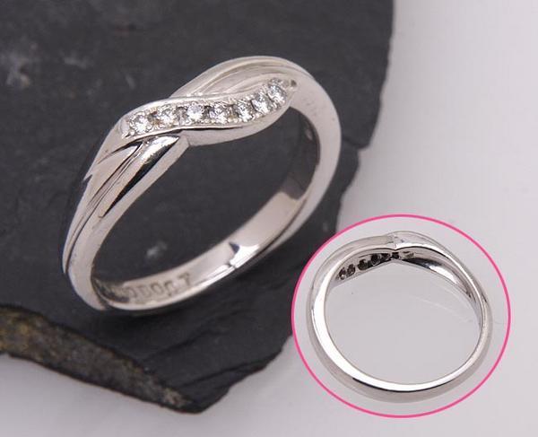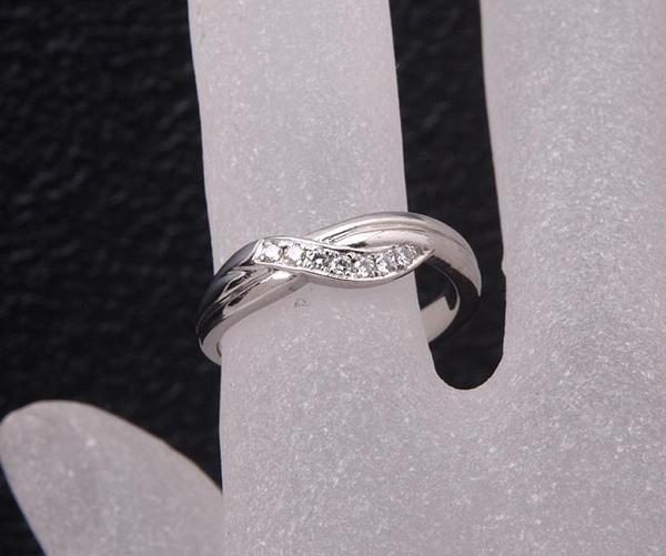 メレダイアが緩やかなライン状に並ぶデザインリングです。