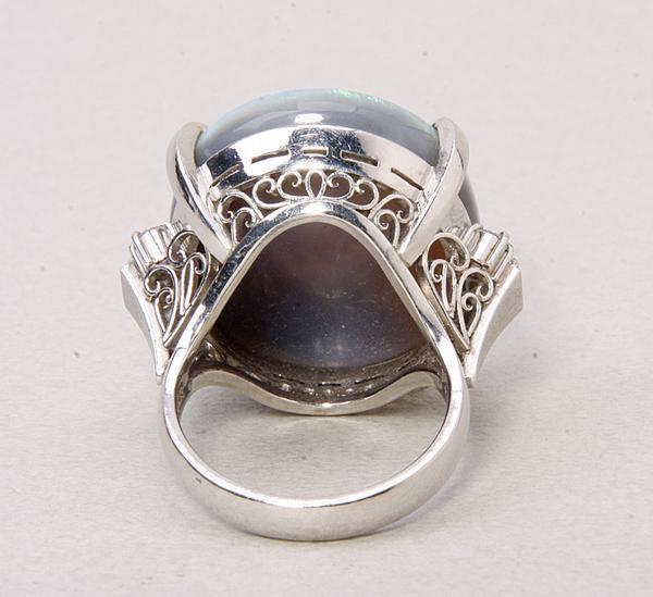 17ctという驚愕の大きさの光沢のある天然ブラックオパールリングです。