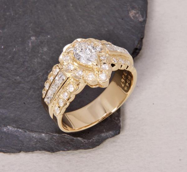 リング自体は小ぶりですが、ペアシェープのダイアが