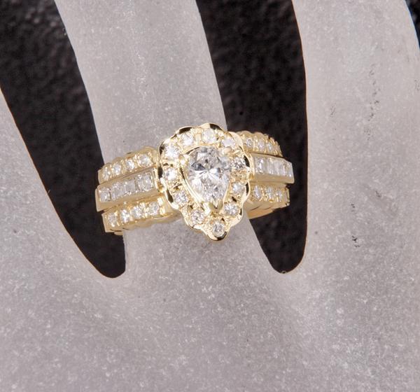 《質屋出品》K18★ペアシェープ天然ダイアモンドリング★k-3389