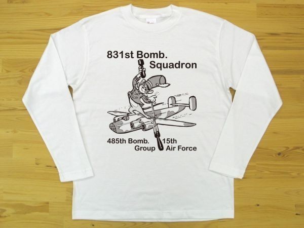 第831爆撃飛行隊 白 5.6oz 長袖Tシャツ 黒 S ミリタリー ねずみ U.S. AIR FORCE