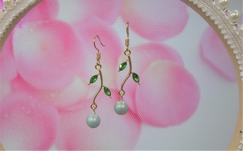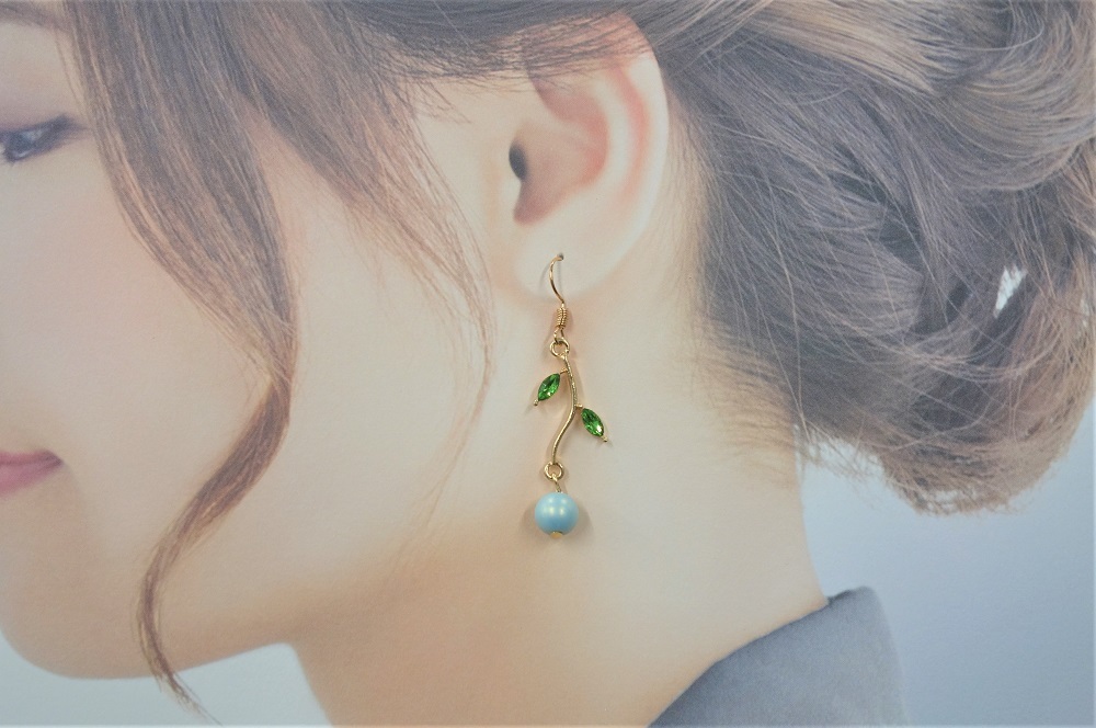 リーフパーツ:A級ガラス製レモン型ビーズ、土台は合金製、ニッケルフリー鍍金