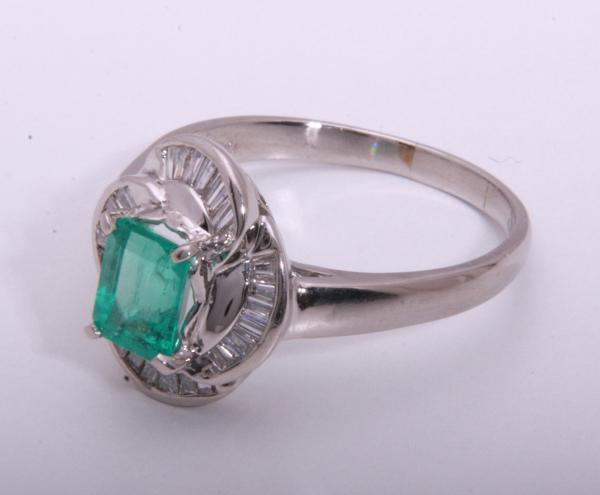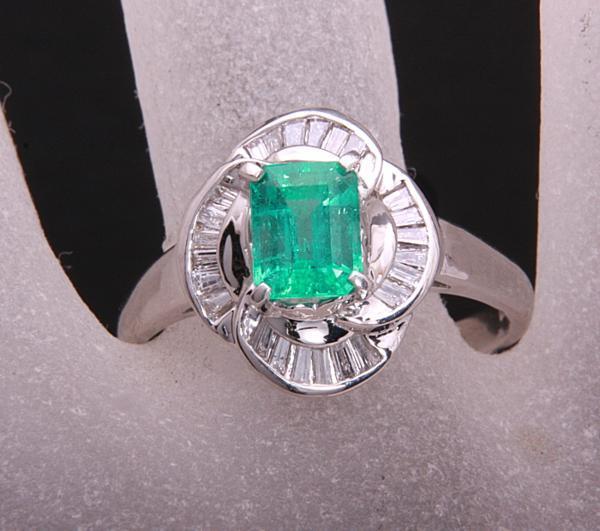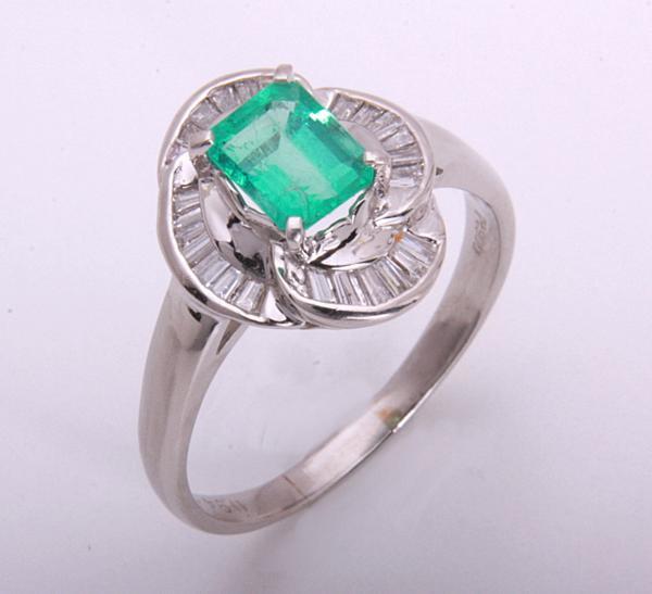 《質屋出品》Pt900★天然エメラルド0.94ct+ダイアモンドリング★C-4100
