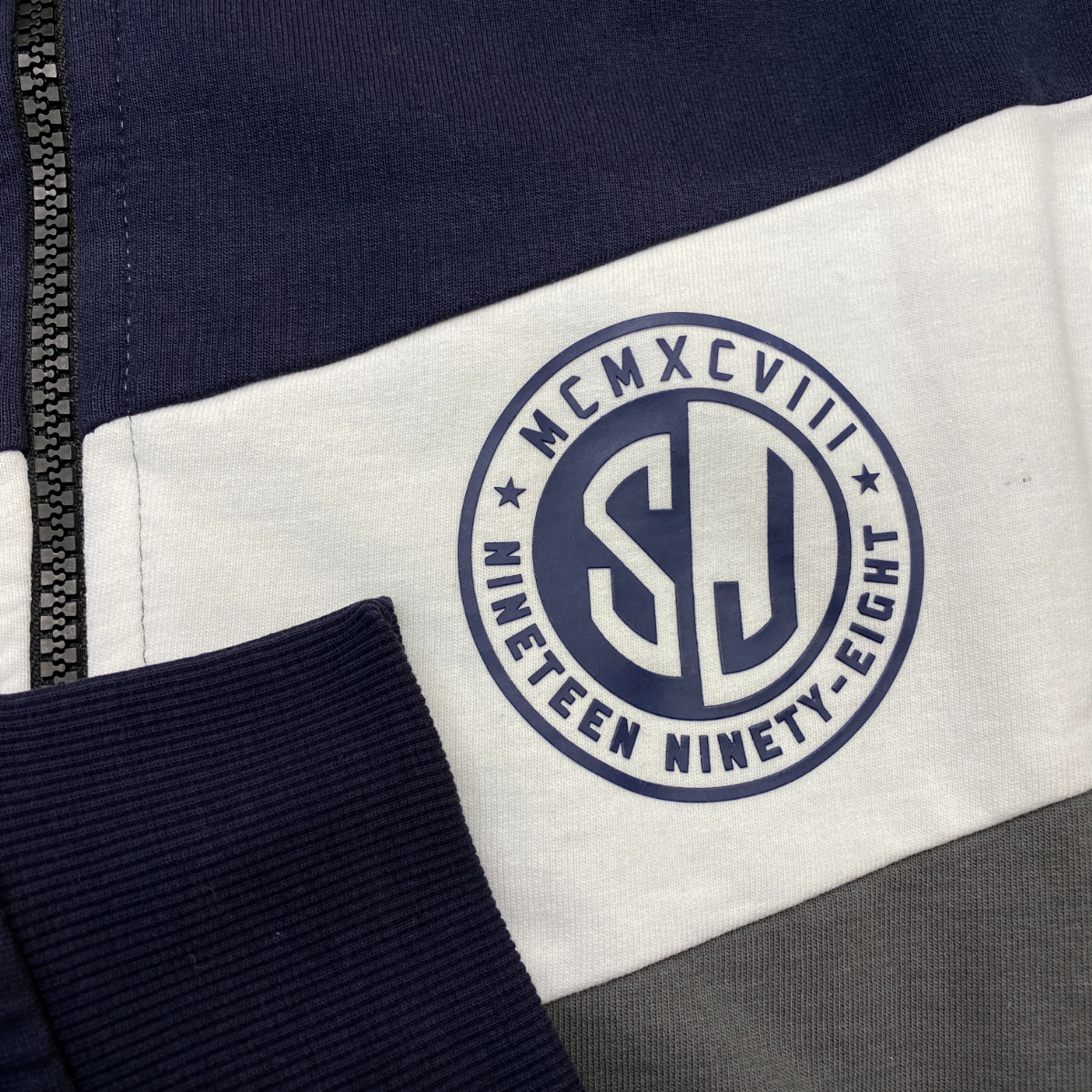 レトロでスポーティな印象のデザインが特徴的なスウェットトラックジャケット
