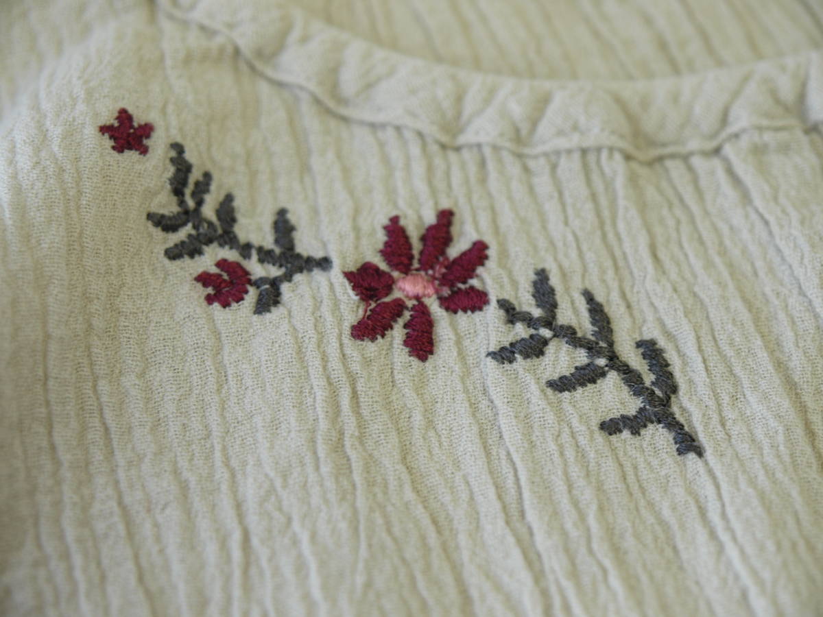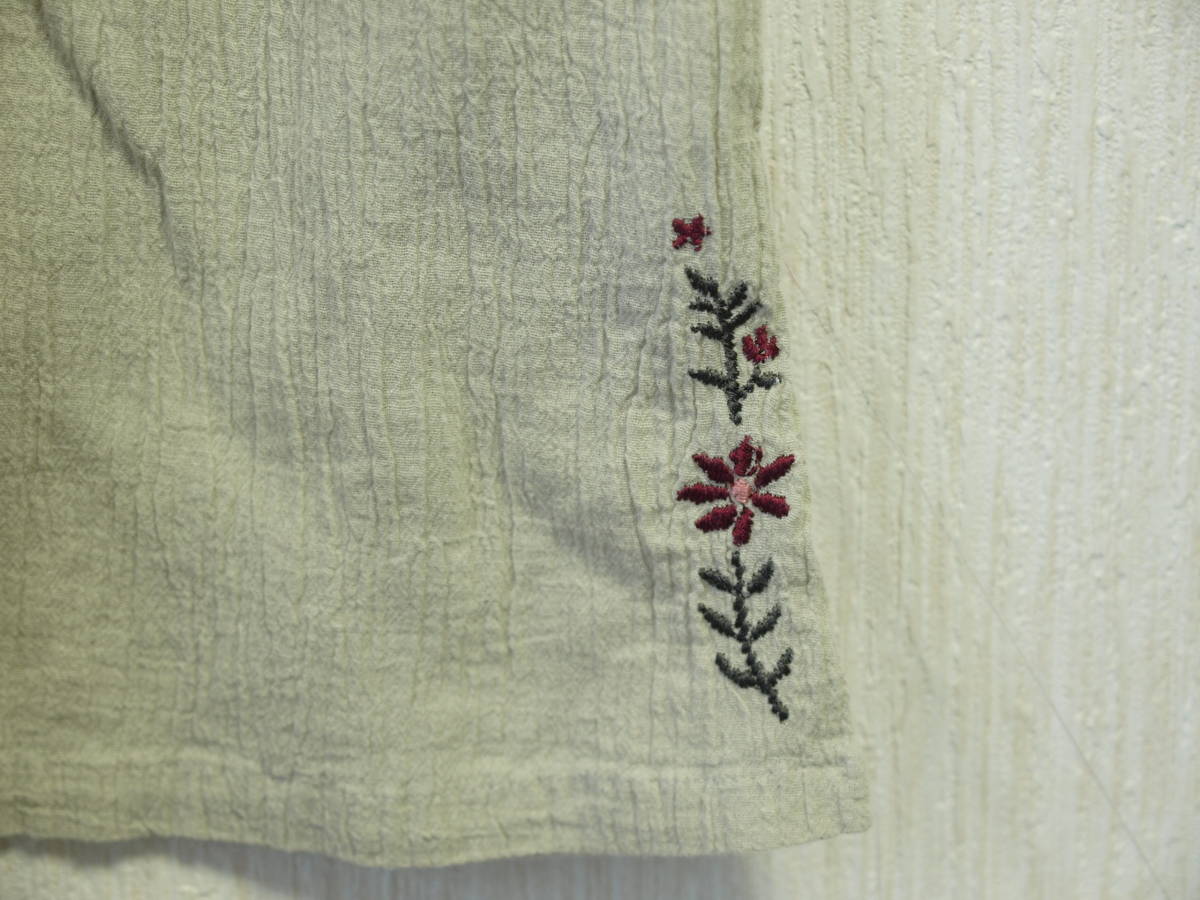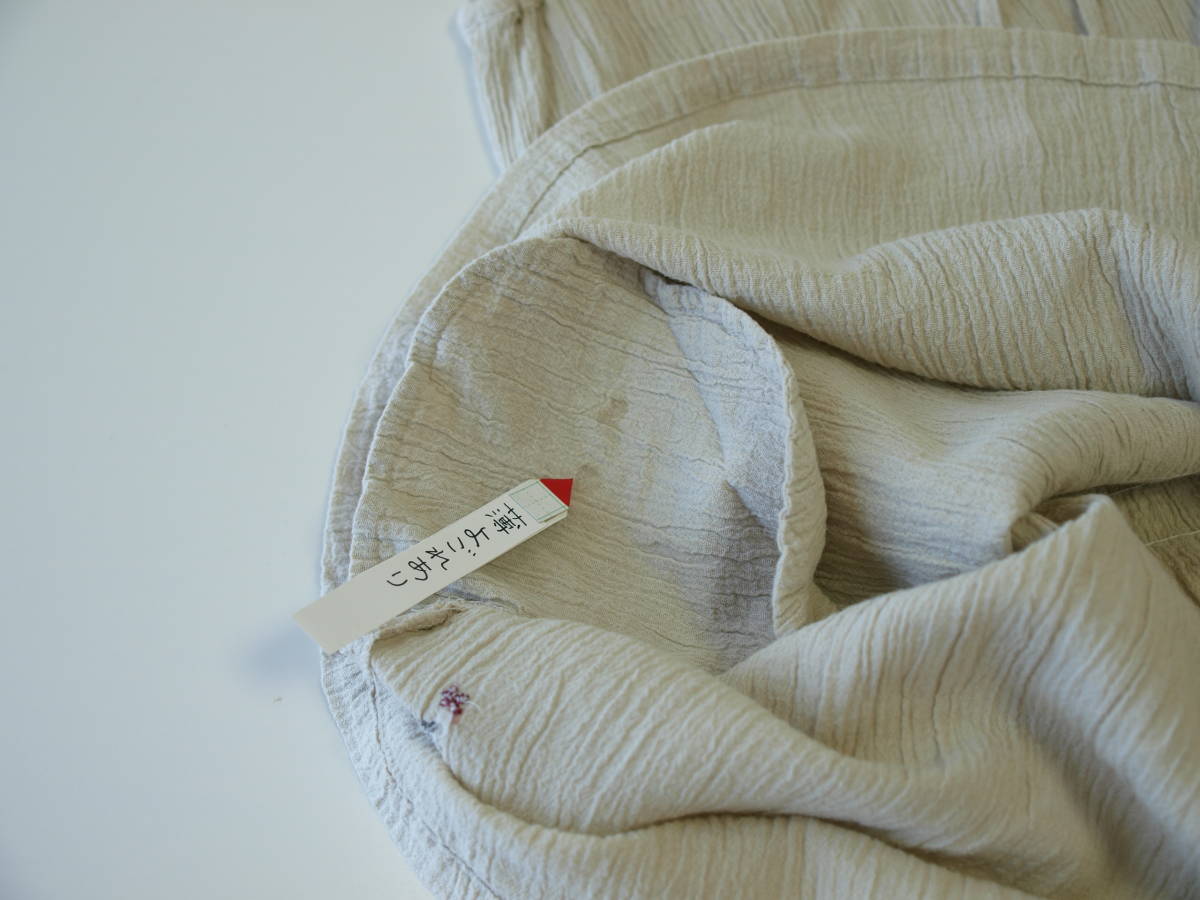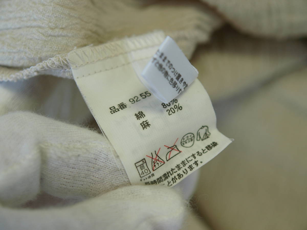商品の補足説明(主観的な内容も含む) 内側に少しシミ?のような汚れ(写真10枚目)がありますが、外側はキレイです。 襟や袖口はゴムになっていて、伸縮します。 シワ加工の天然素材系生地です。(麻混20%) |