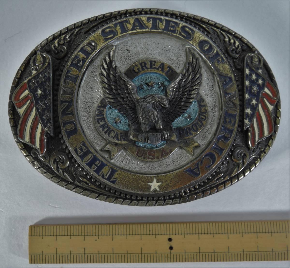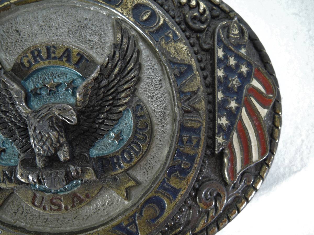 ☆G02■アメリカンバックル社製 バックル THE UNITED STATES OF AMERICA USA製 1986■星条旗/イーグル