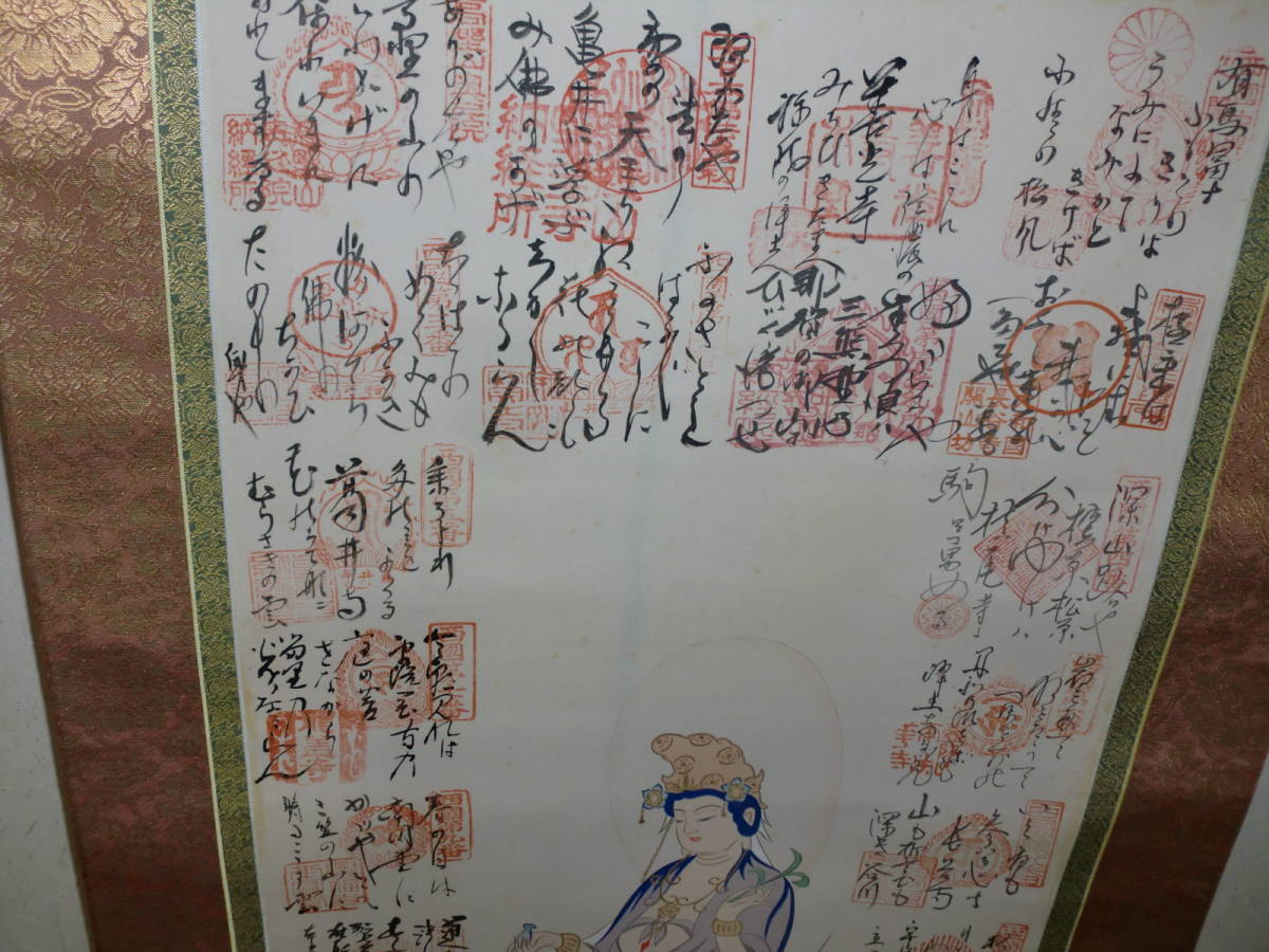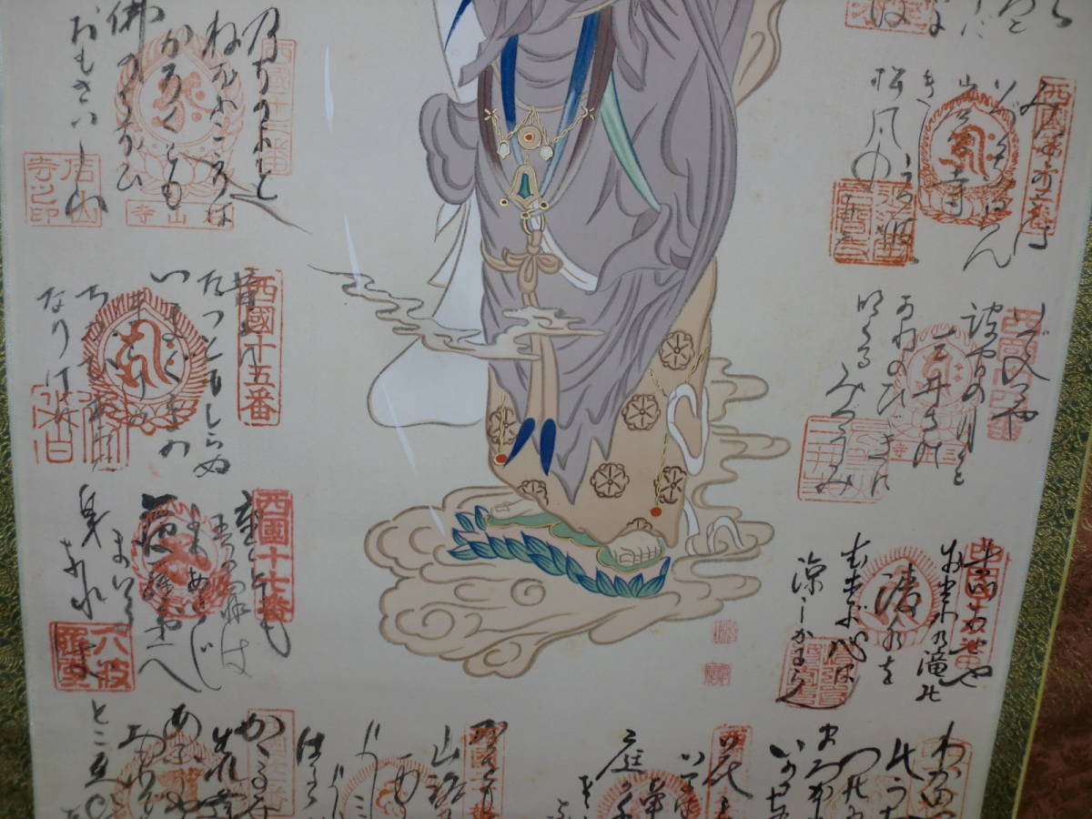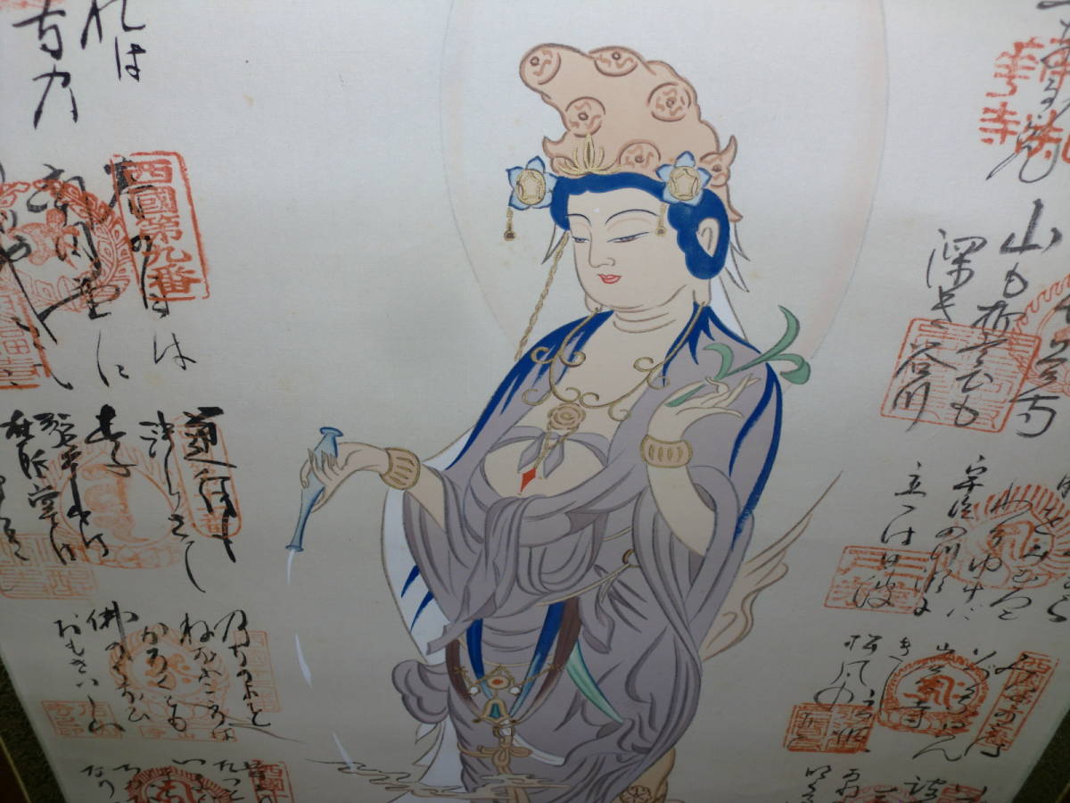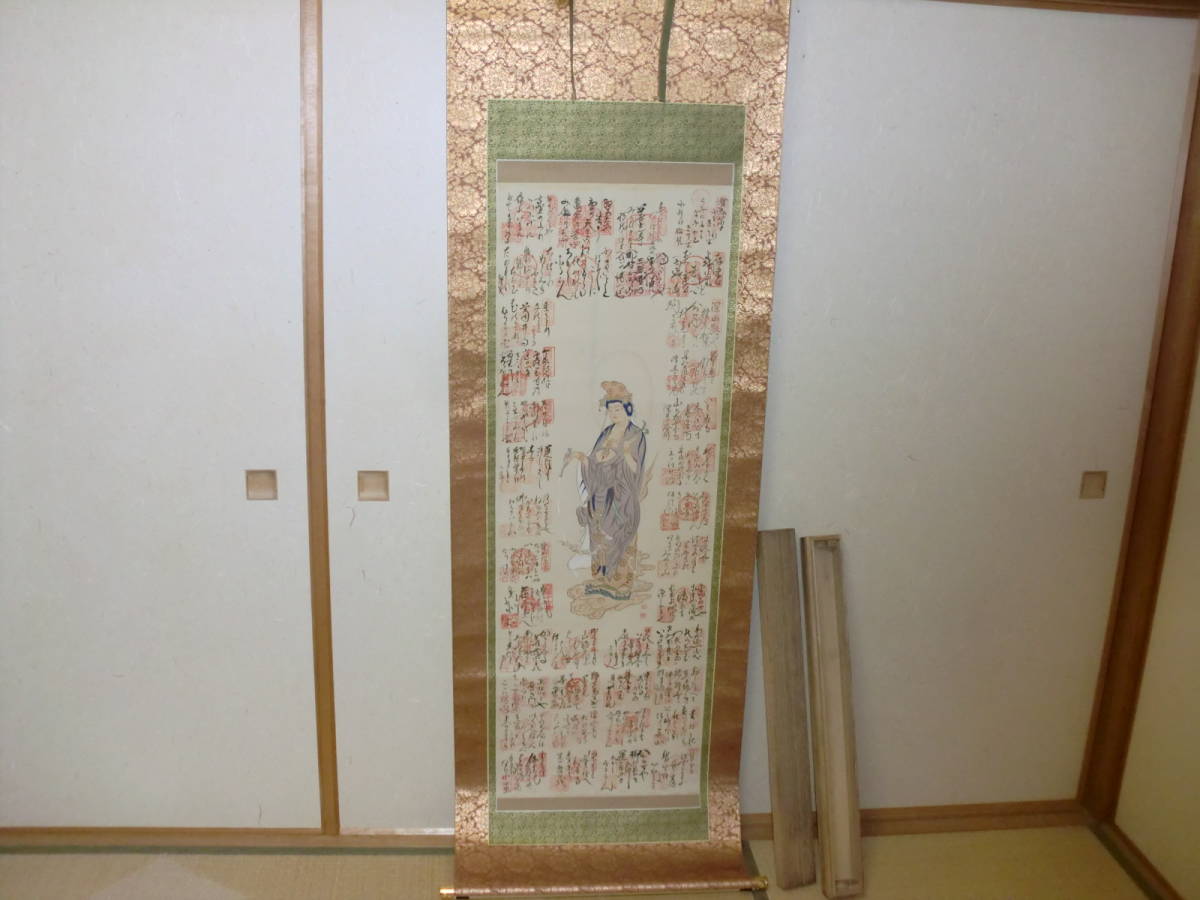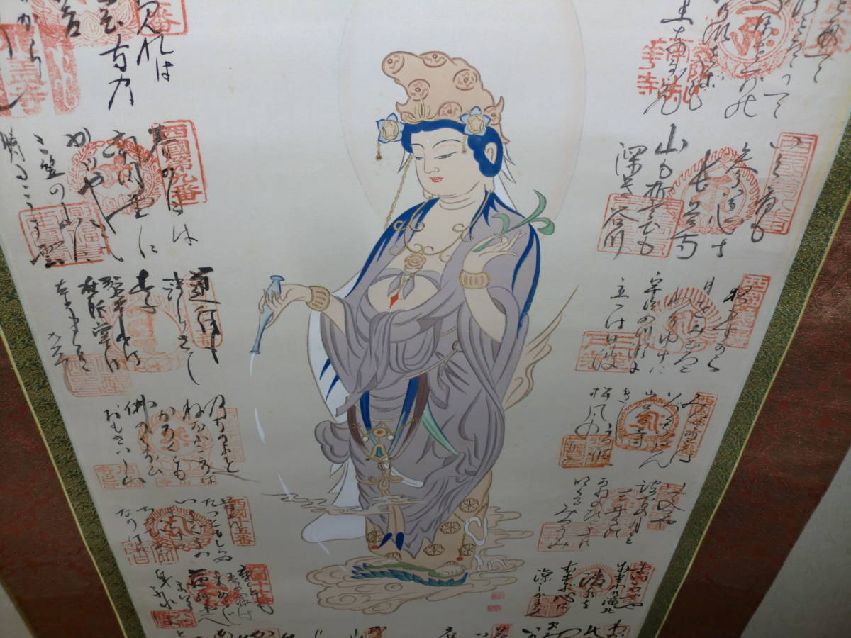 【工芸品】掛軸 開運 吉祥 疫病撃退 西国三十三か所御詠歌 トテモ綺麗な水瓶観音菩薩 木箱