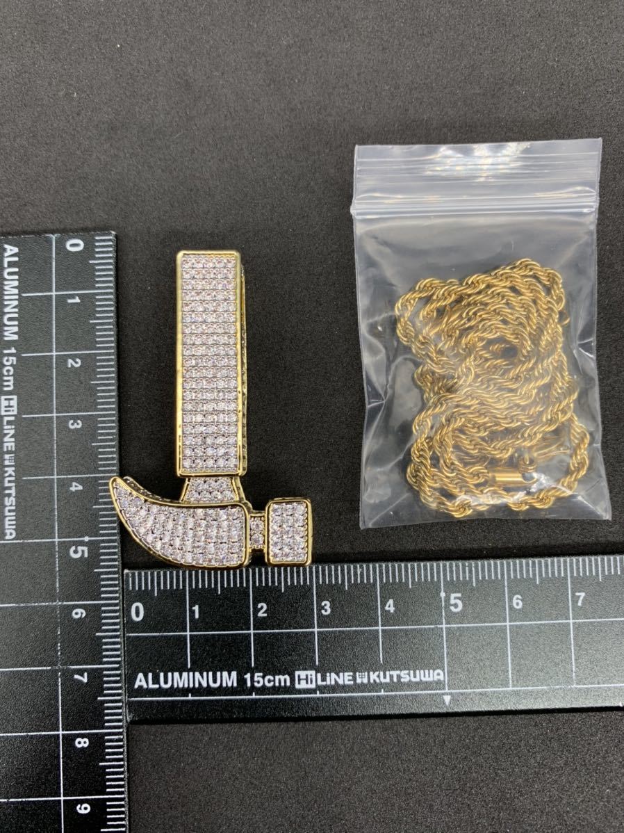 ジルコニアがキラキラと輝く美しいハンマー デザインのネックレスです。