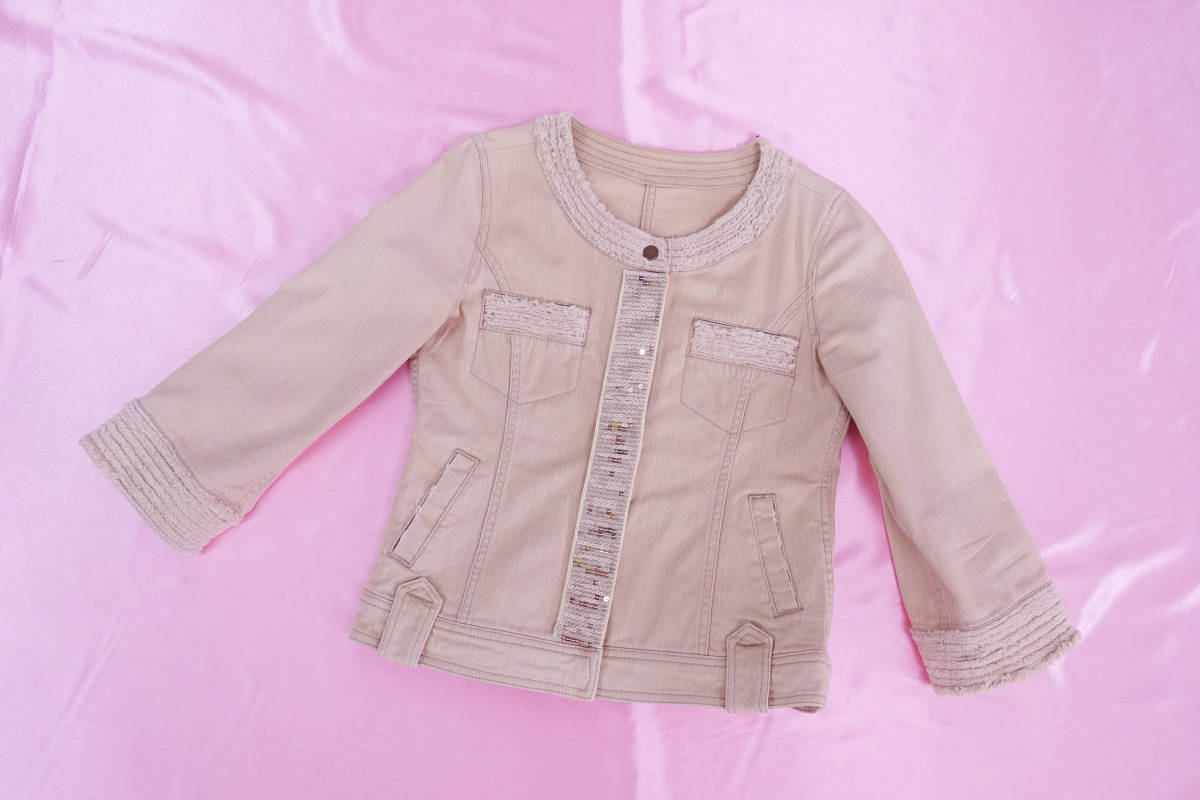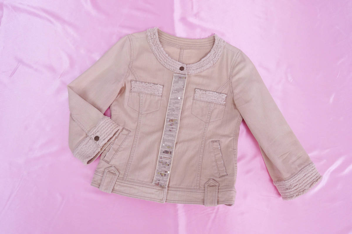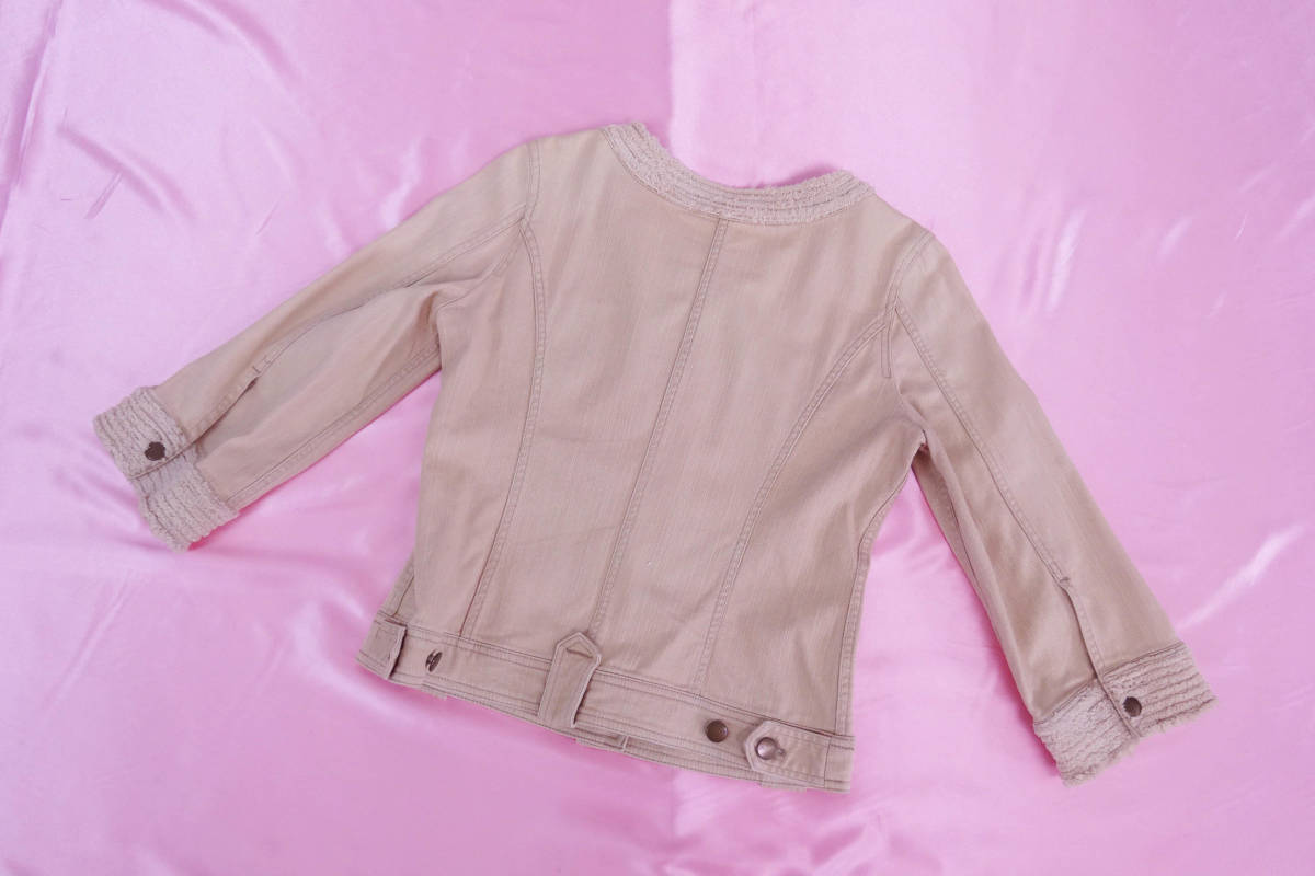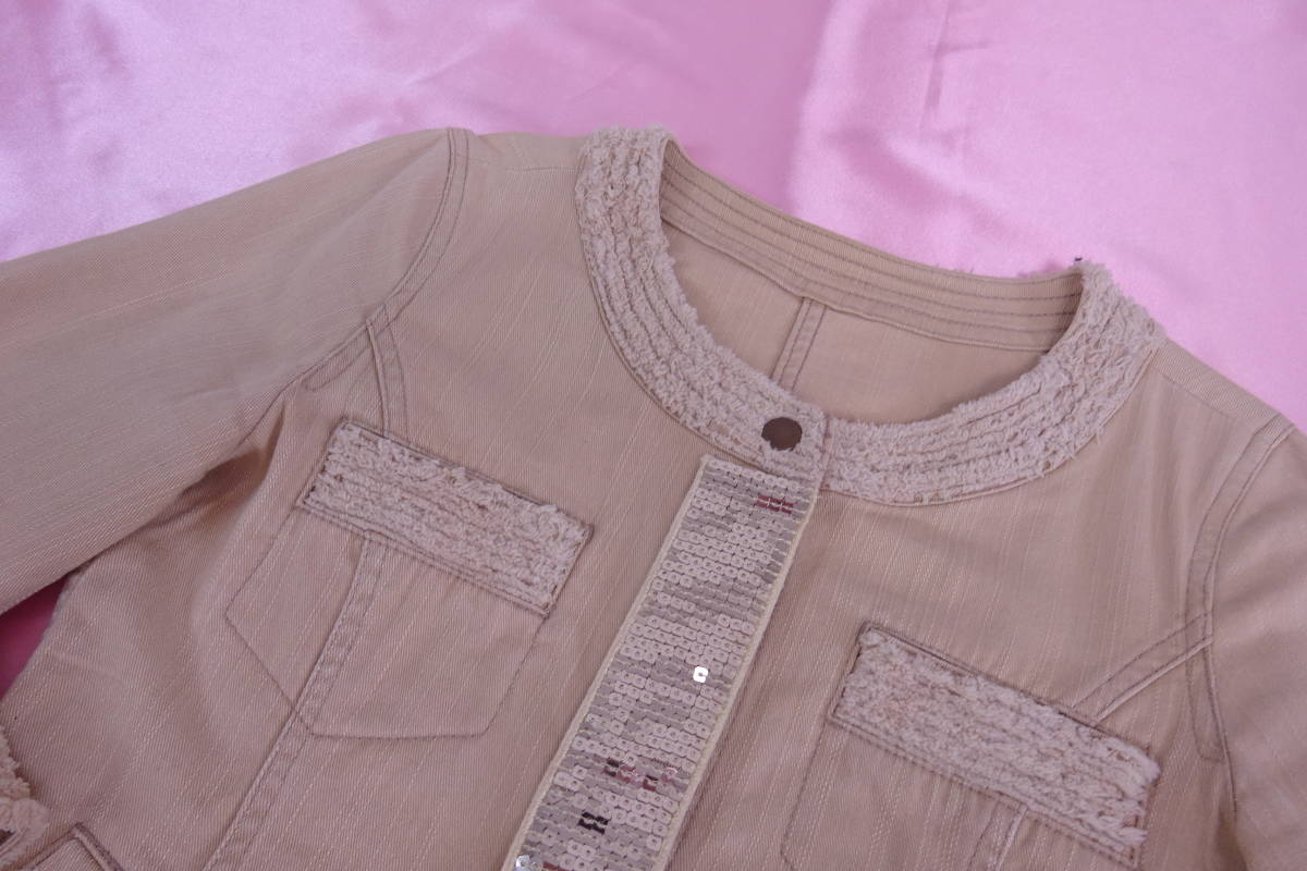 ESTNATION bisエストネーションビス ノーカラーデニムジャケット ベージュ ゴールド