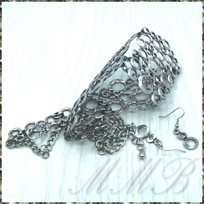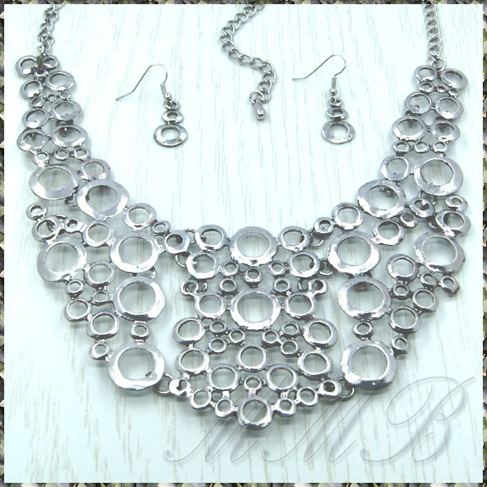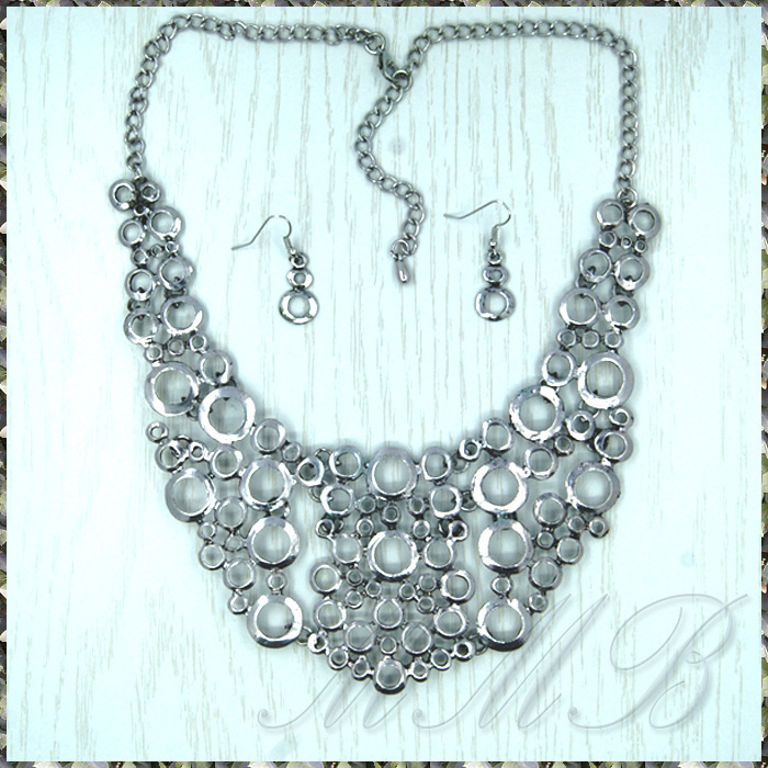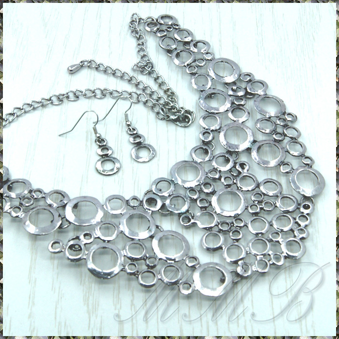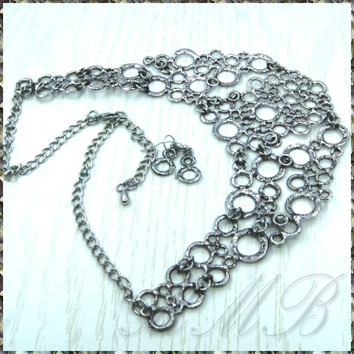 MANY サークル リング セブン プレート エスニック アンティークシルバー調 ネックレス & フックピアス セット です。