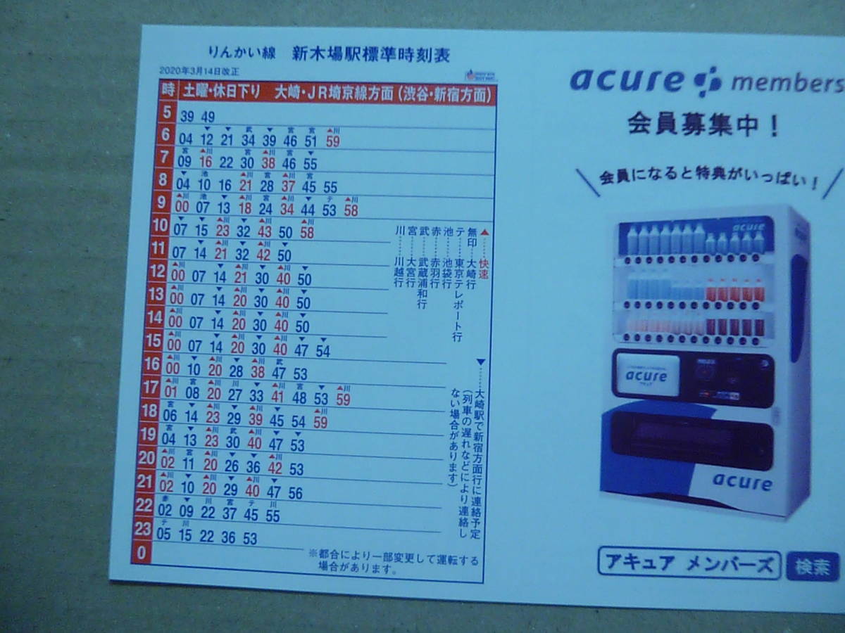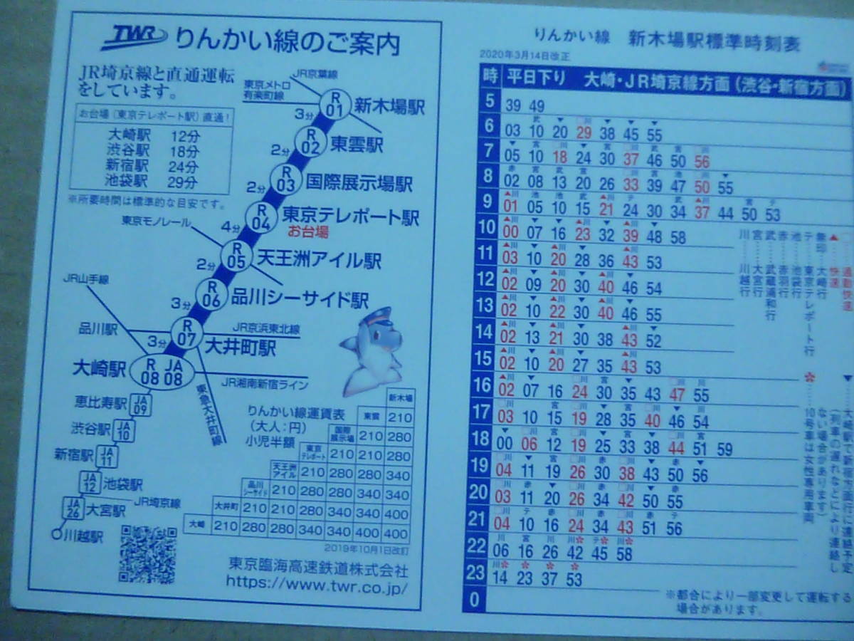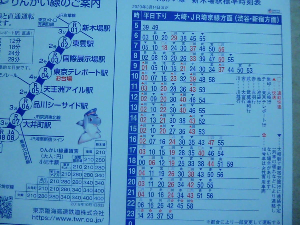 東京都 大崎ー新木場間のりんかい線 新木場駅 時刻表 2020/3/14版 でございます。 |