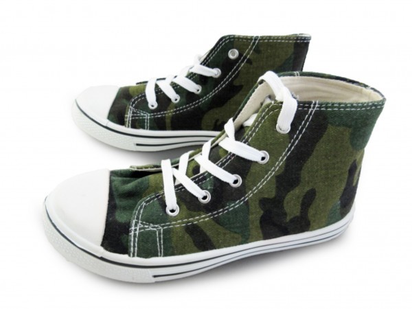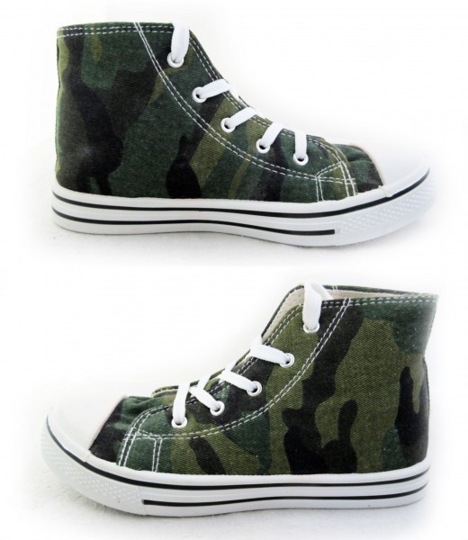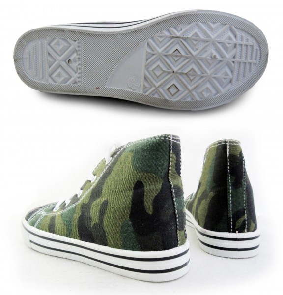 1円~cL059新品AAAミッドカット/レースアップキッズスニーカー21㌢迷彩柄♂