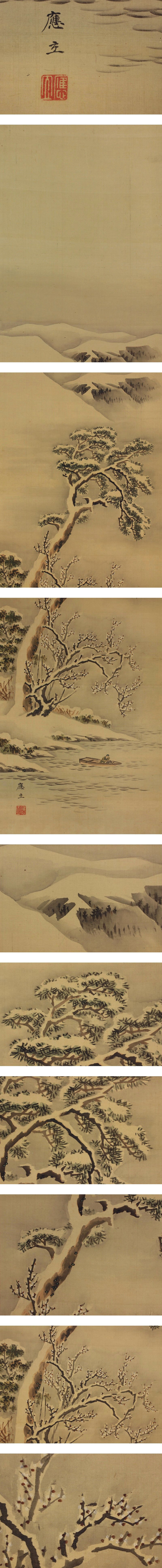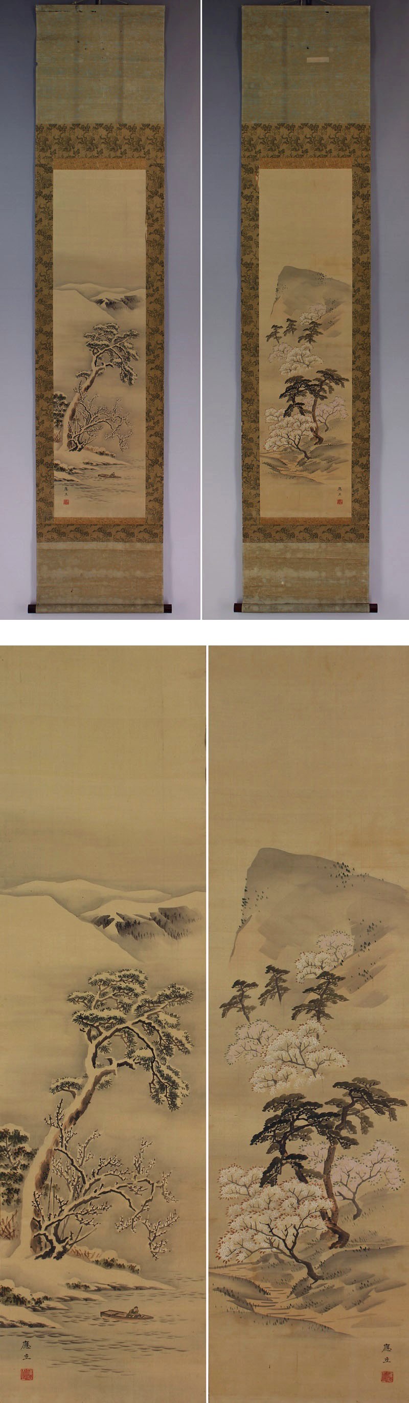 | №2006080 希少【真作】円山応立【双幅・春・冬山水】◆絹本◆合箱◆掛軸 | |