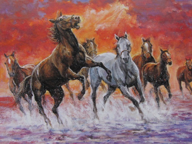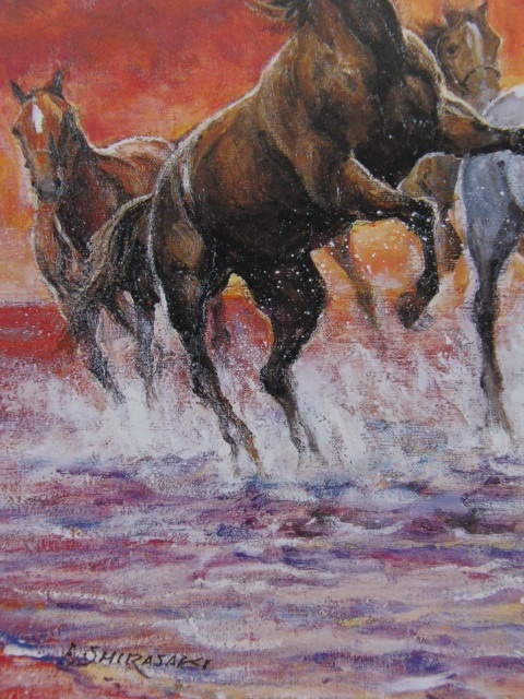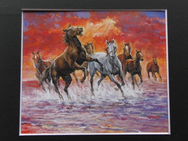 白崎明、【斜光走駒】、希少な大判額装用画集より、美品、日本人画家、新品額装付、送料込み