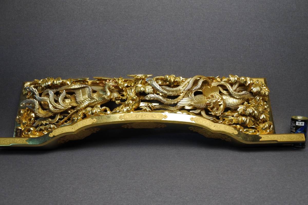 収集品 欄間 作者入 本金箔本金粉 木製 鳳凰 金具付 幅101.7㎝ 状態良好 仏壇 仏具 高さ25㎝ 幅101.7㎝ 奥9㎝ |