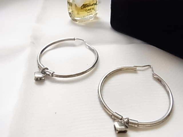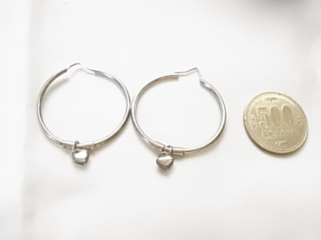直径約3.5センチ シルバーカラー 銀色 ハートのチャームが可愛く揺れる フープデザイン 輪っか ピアス♪
