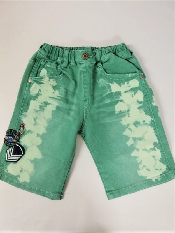 グリーンのデニム地にケミカルウォッシュ加工を施したハーフのデニムパンツです