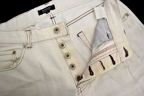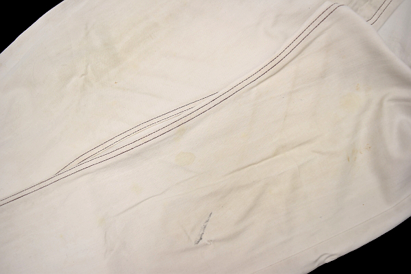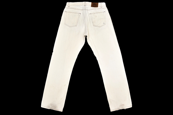 ホワイトカラー ストレートパンツ ドーナツボタン ボタンフライ 右ヒップポケットブランドロゴ刺繍あり