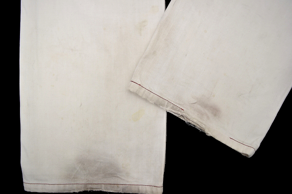 裾の幅を計測。その際、縮みや、シワを考慮して、ピンと伸ばした状態で計測しています。
