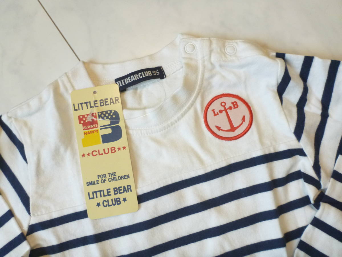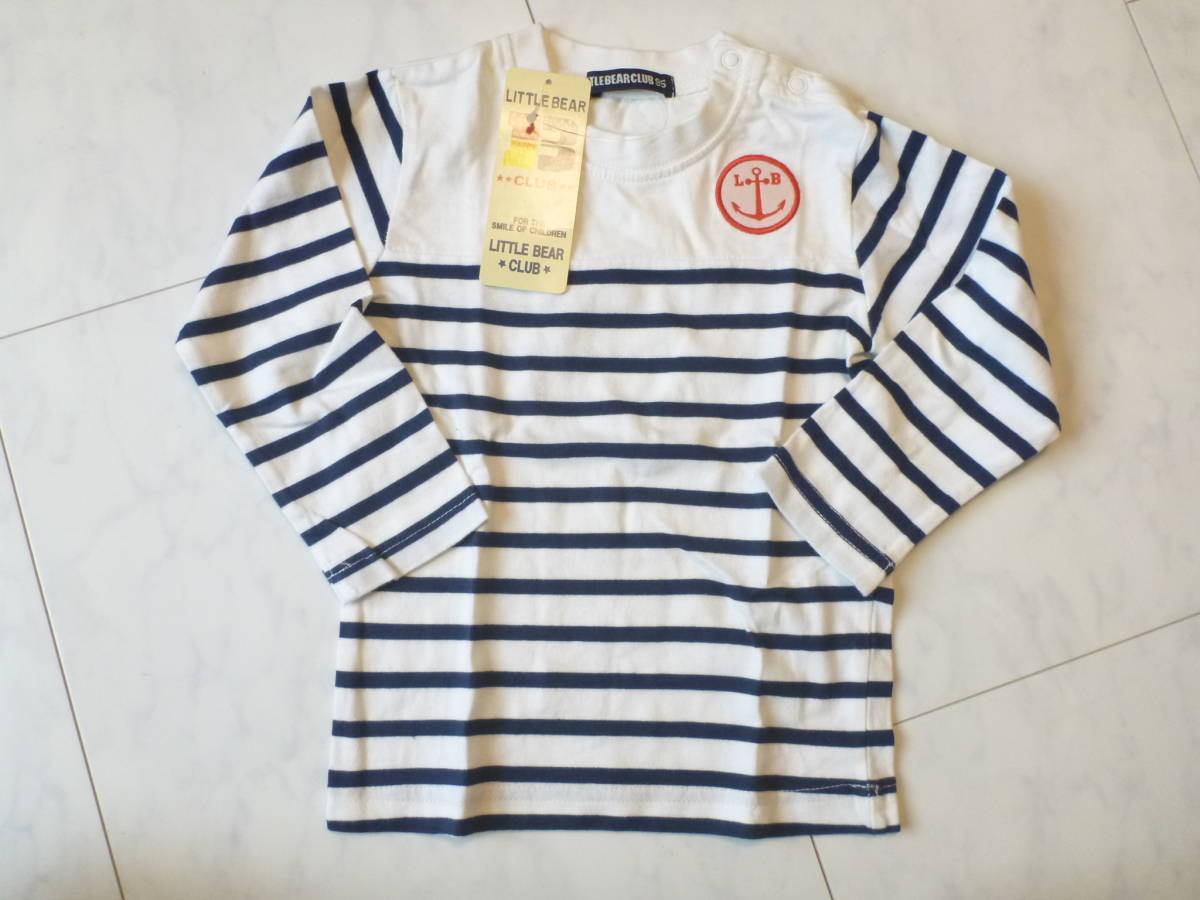 ¥1404 新品 LittleBearClub リトルベアクラブ★ 紺×白 マリン系 ボーダー柄 長袖カットソー 95
