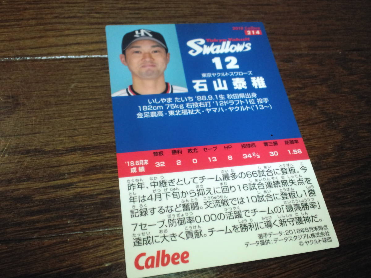 [同梱可]★石山泰稚(東京ヤクルトスワローズ)☆レギュラーカード(214)★2018年カルビープロ野球カード第3弾☆