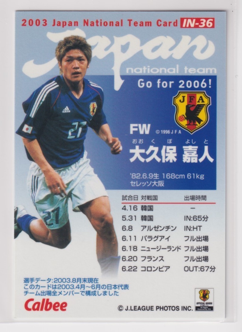 Jリーグチップス2003第2弾 IN-36 FW 大久保 嘉人 セレッソ大阪