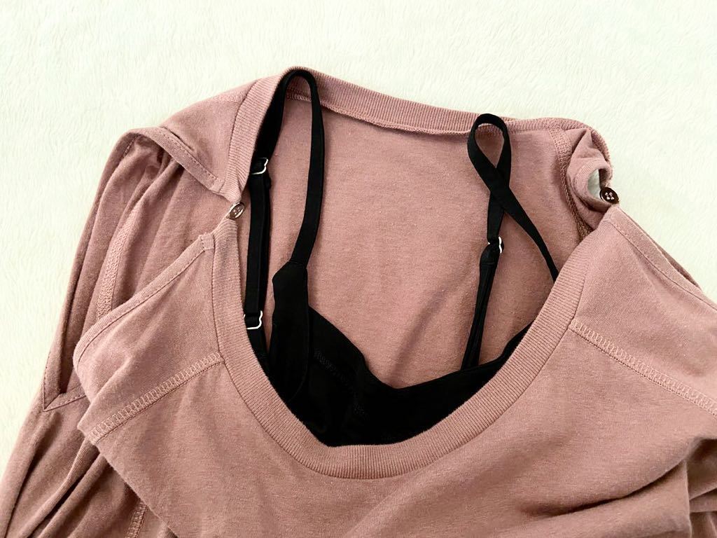 ・上質カットソー系生地を使い計算されたシルエット、インナーが覗くデザインがとてもお洒落なワンピースになります♪♪