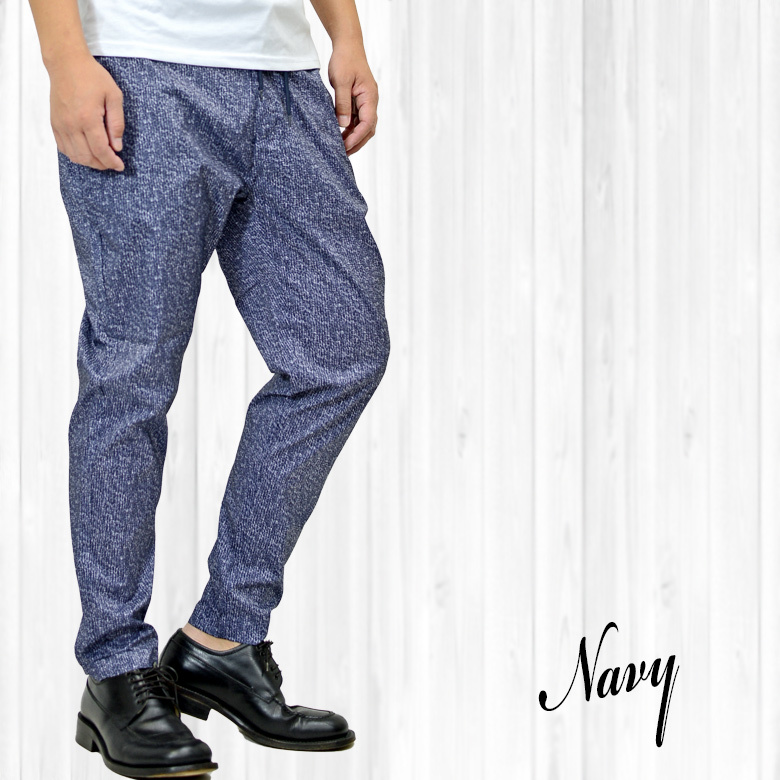 細かな杢調がこなれ感を演出する昇華転写プリントテーパードパンツ。
