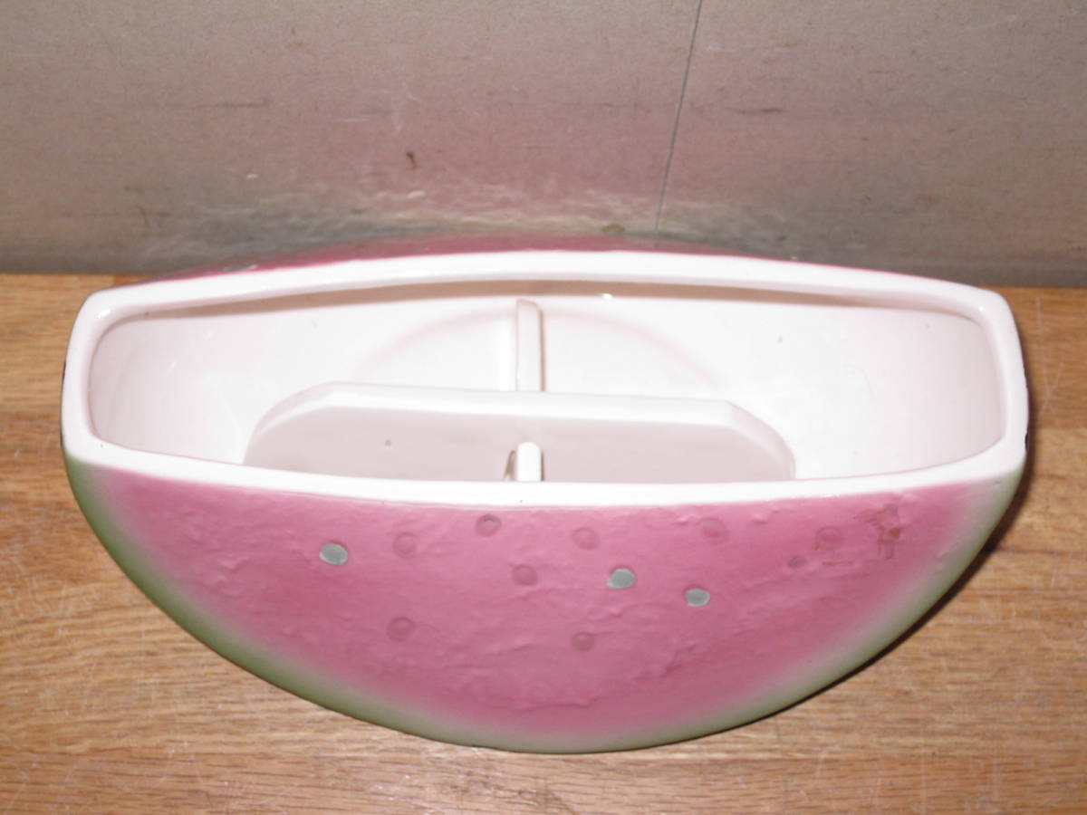 鳥類、小動物用 フィーダー 西瓜 横19.5cm 高さ7.5cm 仕切り固定 欠けあり(検索 餌入れ餌台バードウォッチング野鳥観察