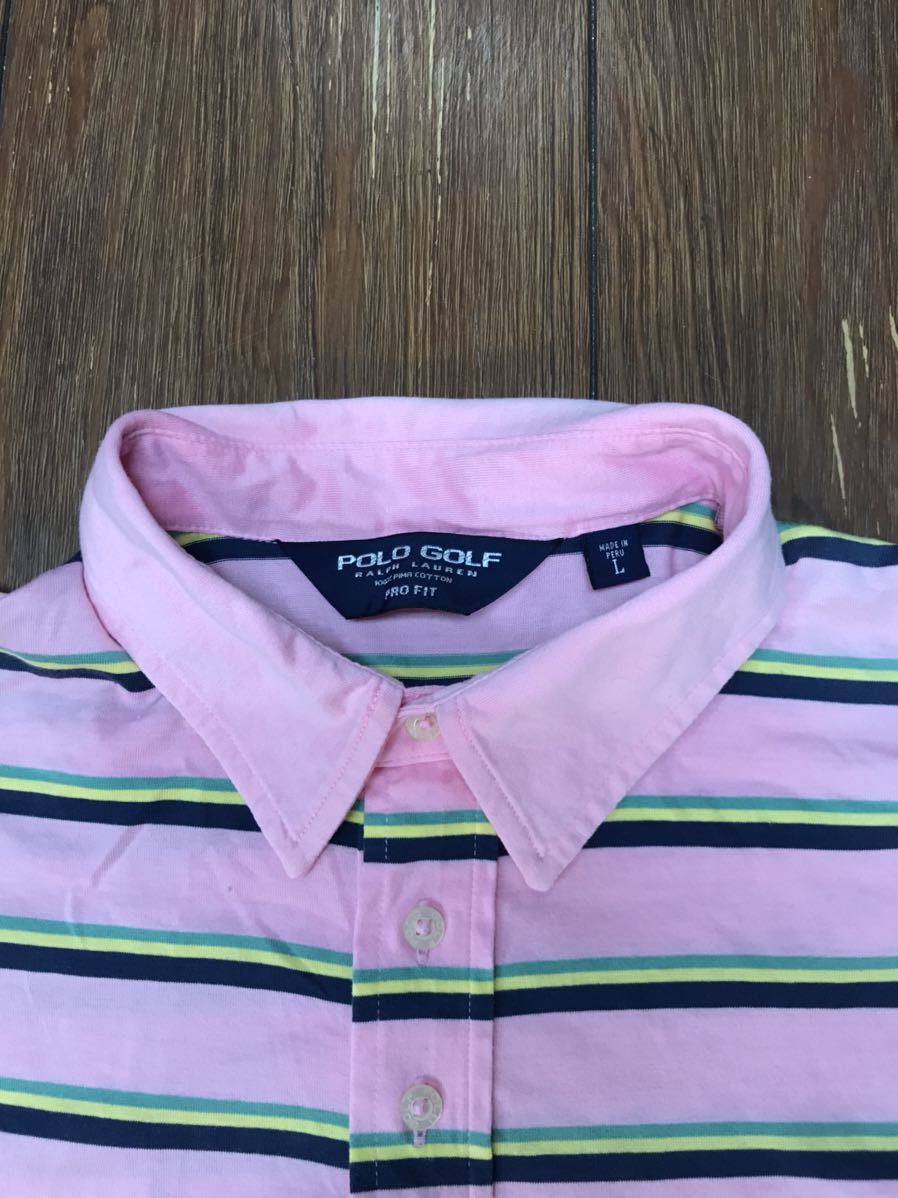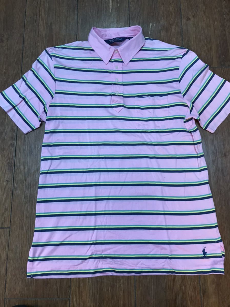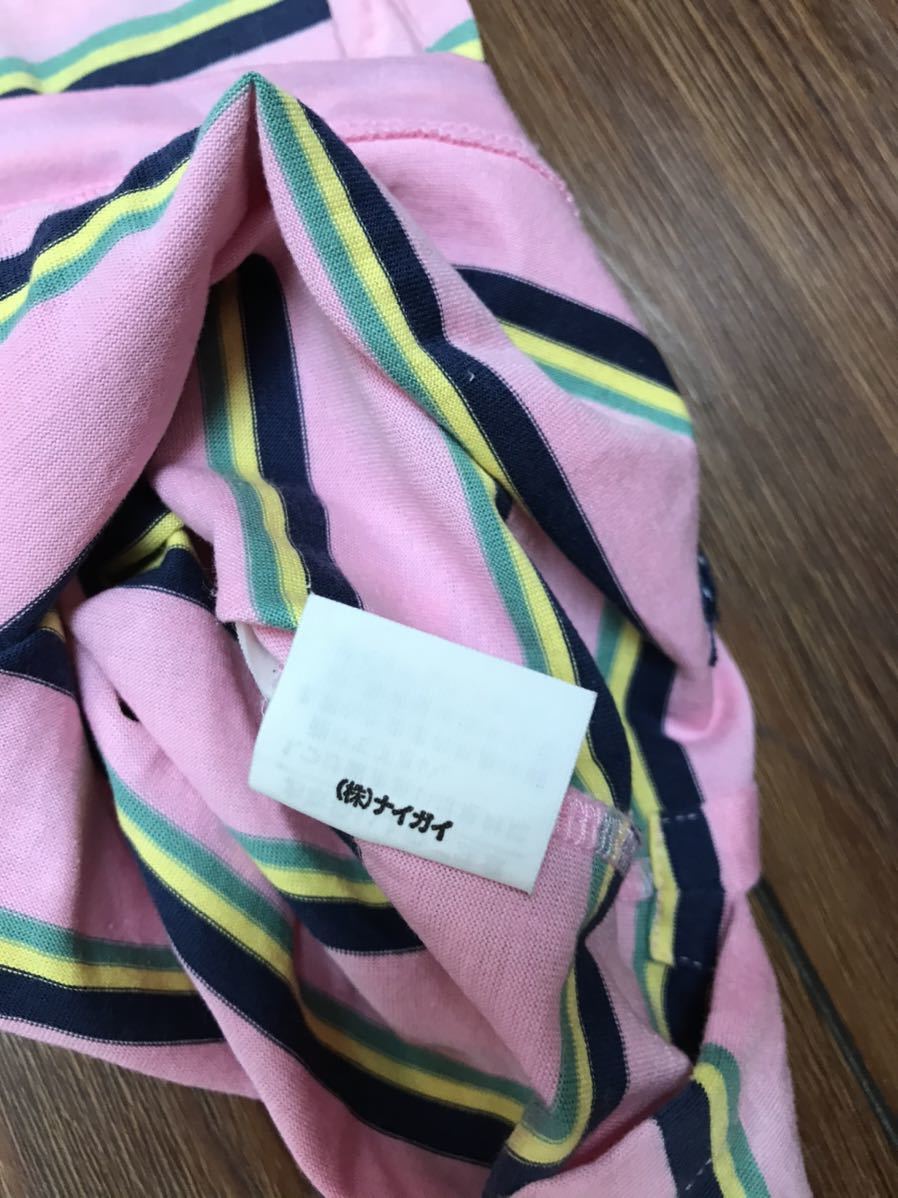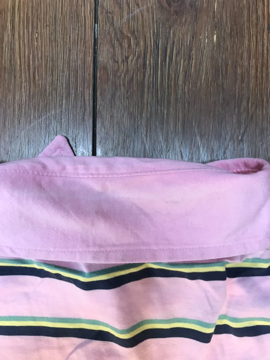 いわゆる古着のコットンのポロシャツです。それなりに使用感はあります。衿の織り部分に白く薄っすら色焼けが入ります。画像を参考にご検討ください。保管によるシワが付いてしまいますが、その他目立ってダメージ汚れはありません。