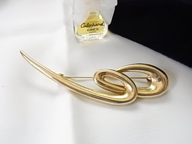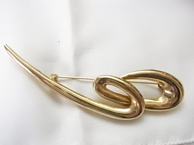 流れるような曲線デザイン ゴールドカラー 金色 モニュメントみたいな個性的な印象 ブローチ▲