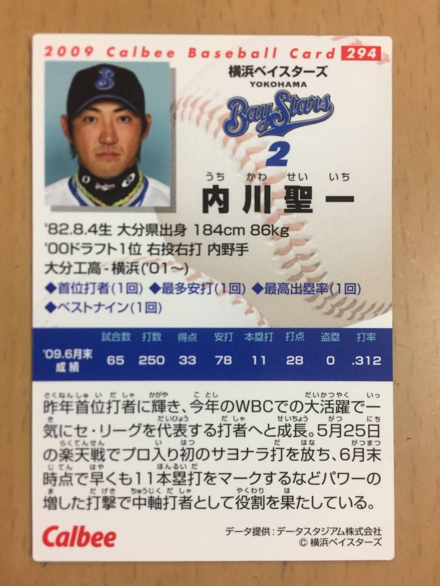 2009年カルビープロ野球カード・294・内川聖一(横浜ベイスターズ~福岡ソフトバンクホークス~東京ヤクルトスワローズ)