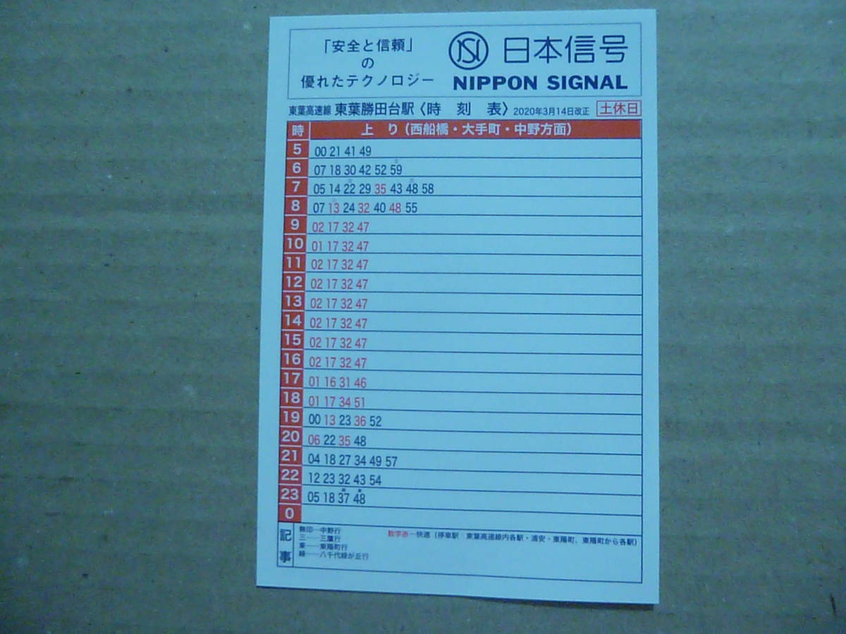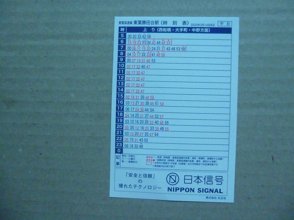 千葉県 東葉高速線 東葉勝田台駅 時刻表 2020・3・14 でございます。 |