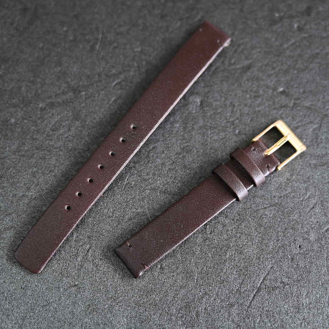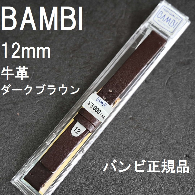 バネ棒付 送料無料★特価 新品★BAMBI 時計ベルト 12mm 牛革バンド 薄型 ダークブラウン こげ茶★バンビ正規品 定価税込3,300円