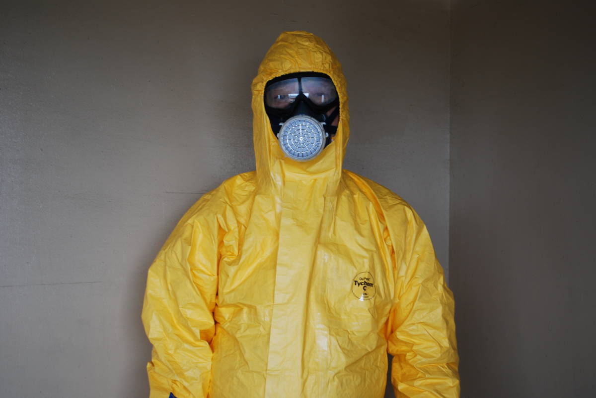 直結式小型防毒マスクGM-76 ・CA-12-104N2/OV吸収缶1個+予備吸収缶1個=計2個付きとデュポン社のデュポンタイケムC化学防護服とゴーグル・シューズカバー・手袋(インナー用2組)の8点セットです。化学防護服はタイベックにポリマーコーティングが施されていて、●マスクにも伸縮性の顔口部●縫い目はテープによりバリア性を向上●汚染物質の侵入を防ぐ、手、足の裾のしぼり●ファスナー部分からの浸透を防ぐ、ファスナーカバーのフラップ(粘着テープ付き)になっています。吸収缶(発送時には最新の吸収缶を発送しますので、保存期限には十分な余裕があります)・ゴーグル・シューズカバー・手袋はピッカピカの未使用品、防毒マスク・化学防護服(ネットに入れて普通に洗濯機で洗う事が出来ます)は未使用保管品です。画像を良くご覧の上、ノークレームノーリターンで宜しくお願い致します。
