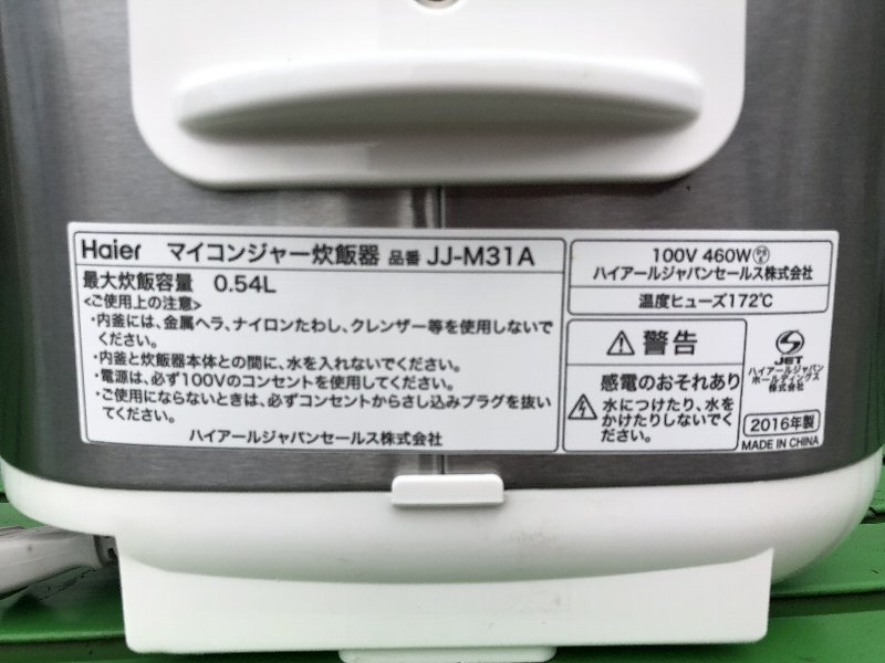 | 商品説明 | 15 Haier ハイアール マイコンジャー炊飯器 JJ-M31A 0.54L 16年製 内蓋に汚れあり。 中古品扱いでお願いします。 |