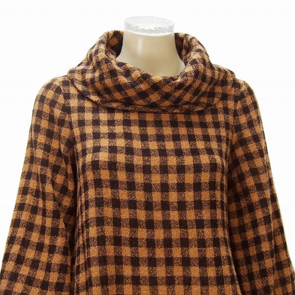 OP)新品同様*タバサ TABASA★優柔の織生地(ネップ入×2色チェック柄★オーバーサイズ★変形ワイドチュニックワンピース★36(7~9号 S~M相当