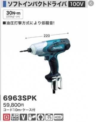 詳しくはソフトインパクトドライバ 100V 6963SPK  で検索なさって下さい。