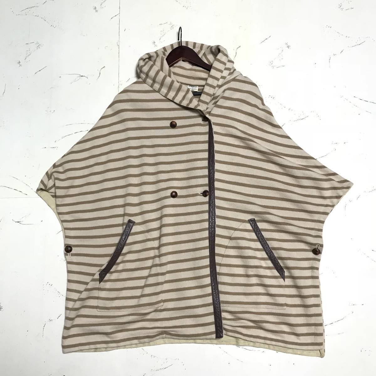 ★ダイアグラム Diagram GRACE CONTINENTAL★レザー 切り替え ボーダー ポンチョ ジャケット