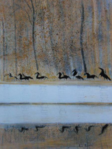 アンドレ・ブラジリエ、騎馬行列、希少画集画、新品額装付 、kan