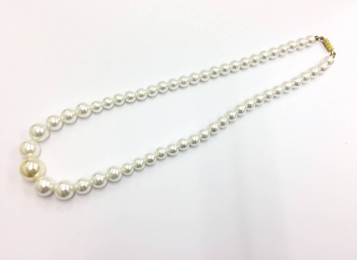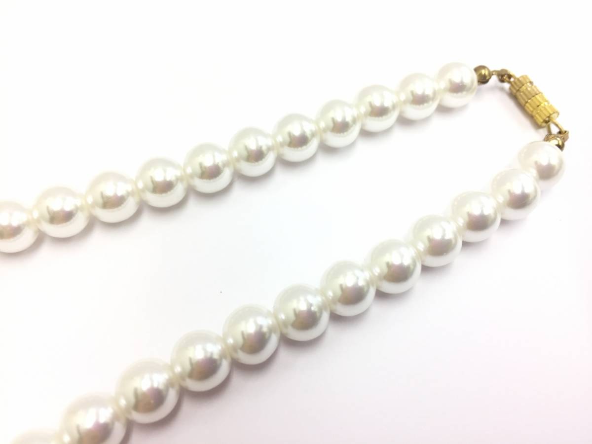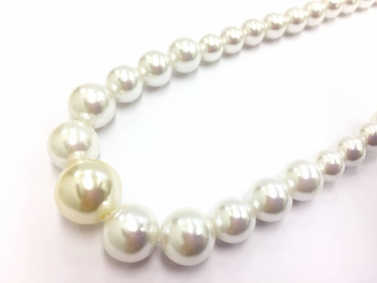 ・どちらの玉もホワイト系に見える気がします(あくまで当方が感じた色合いなので断定は出来ません)ネックレス中央付近のパールは黄色がかった色をしています。