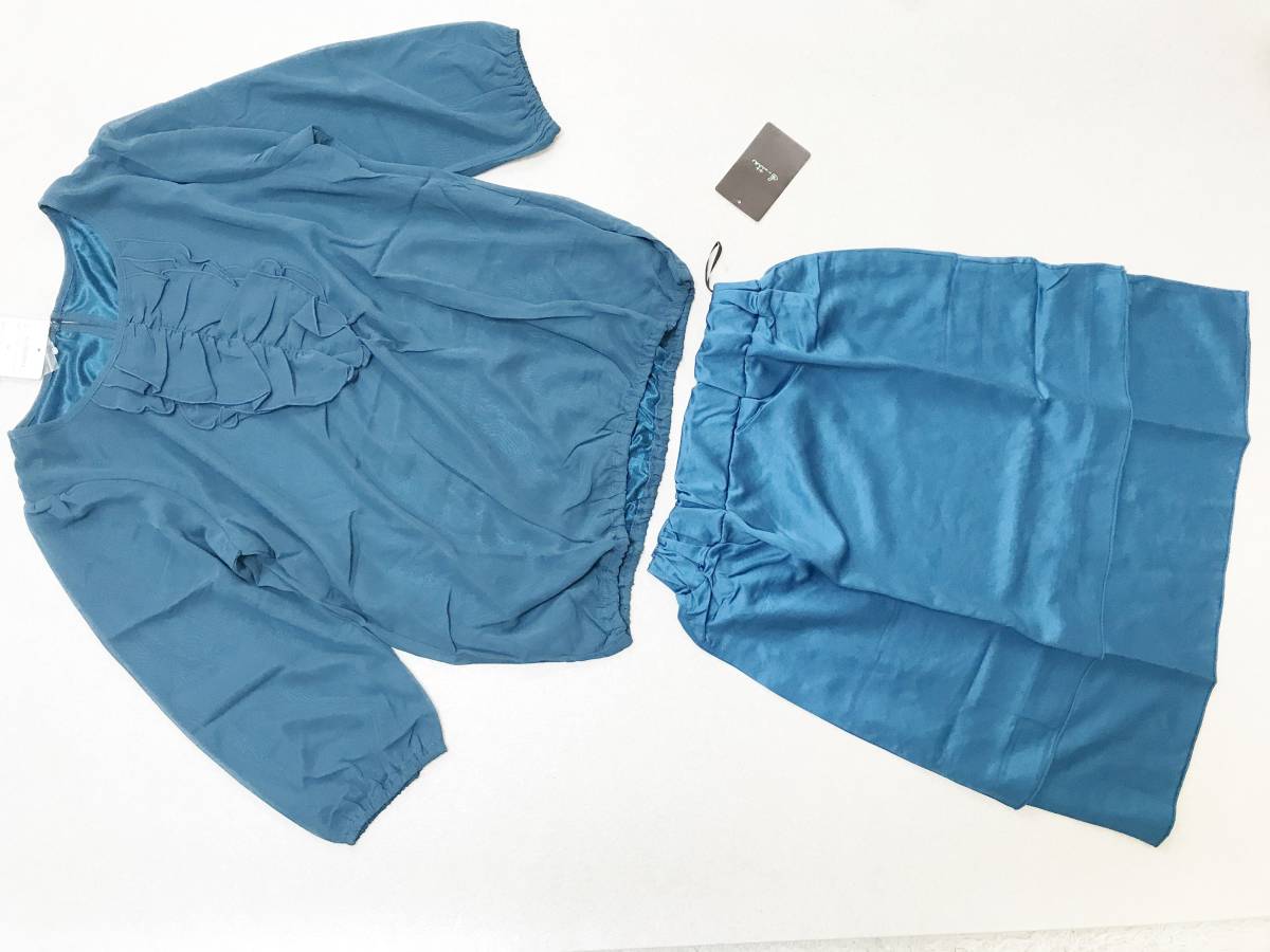 株式会社 アールアイシー サイズ表記:M お色め:グリーン 系 ポリエステル100% 平置き採寸(参考) 肩幅(肩線~肩線)/約32cm 身幅(脇下)/約47cm 袖丈/約42.5cm 着丈/約62cm ・腕、裾先ゴム スカート 平置き採寸(参考) ウエスト/約31cm*ゴム 総丈/約53cm ・ツルサラ生地で2段裾スカートです 未使用品ですが、自宅保管にご理解頂ける方のご入札ご検討願います。 ◆細かい点(ご利用に問題のない程度の小さな傷・匂い・汚れ・シワ等) は素人検品の為記載漏れがあることをご理解願います◆ ◆洋服のようなものは保管・発送時のしわをご理解ください。 ◎照明・パソコンの色彩環境等の違いから 掲載の画像と実物の色味が異なる場合がございます。 ★発送について★ ◆全国送料無料・・・日本郵便◆ 追跡のある方法でお送り致します。 ★自動メッセージで発送連絡がされます。 別途こちらより発送の際のご案内はしておりません。 ◆土日祝・年末年始・GW・お盆期間はお休みしています 発送対応はしておりません。◆ ◆平日11時頃までのご入金確認で当日発送を心がけておりますが 対応出来ないときもありますので ご入金確認後の翌日~3日程度の発送でご理解ください◆ ★長期のお休みは自己紹介にて記載しております。 お手数ですがお急ぎの場合は一読お願いします。 | |||