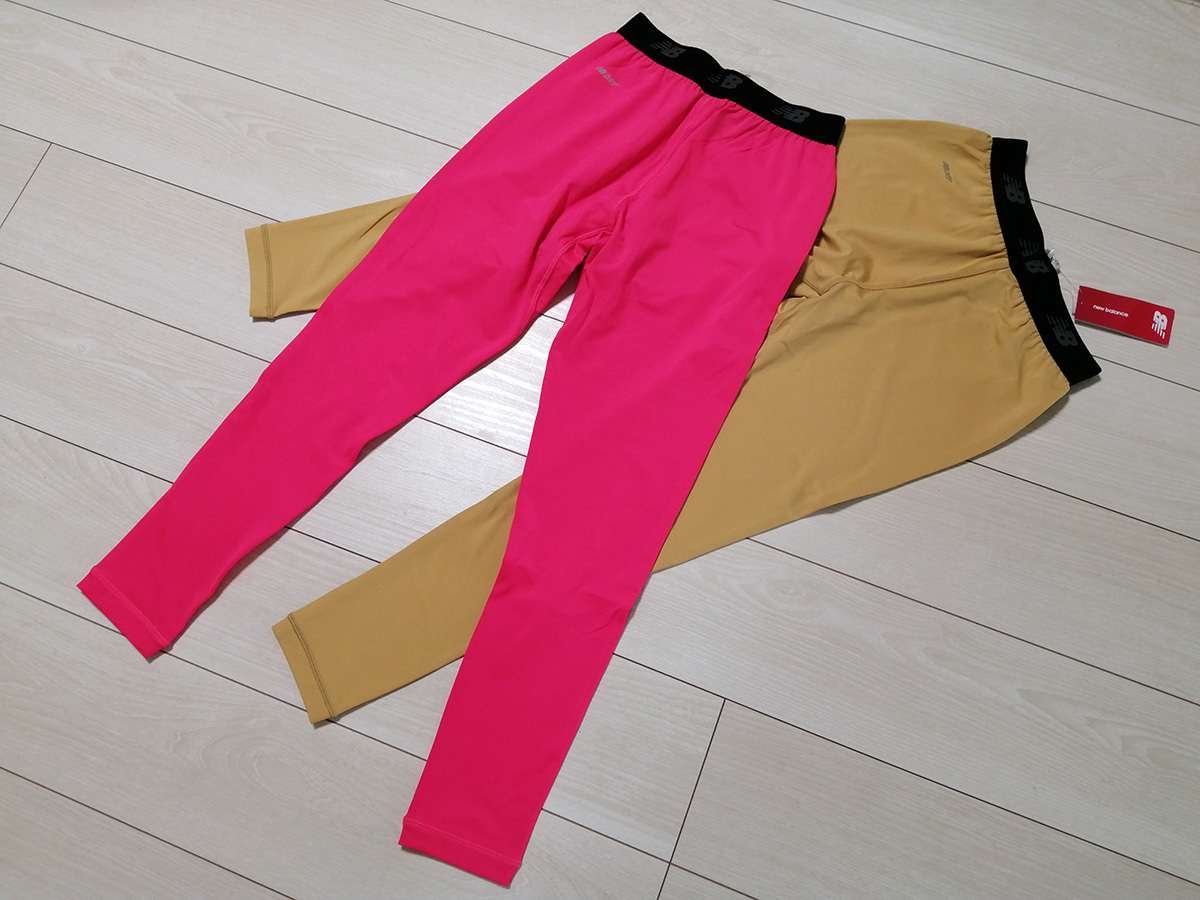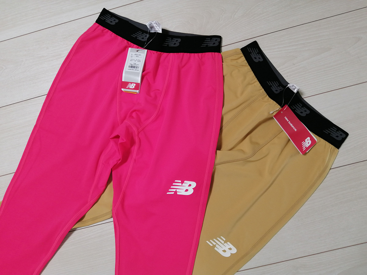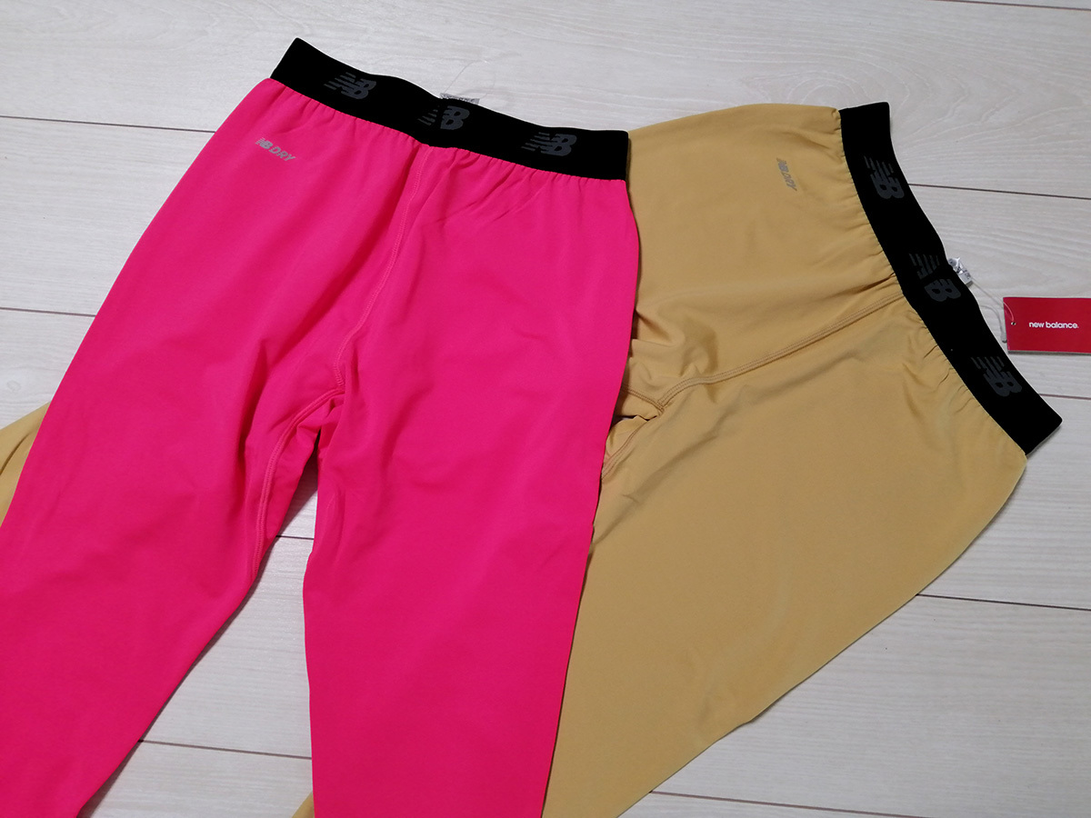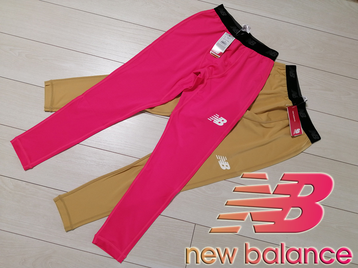 ◆新品 ニューバランス NewBalance ロングタイツ スパッツ 2枚セット メンズ M ネオンピンク & ゴールド 定価9,460円 吸汗速乾 レギンス