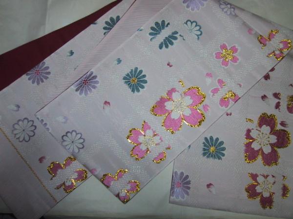 仕立てつき振袖用帯 西陣6通柄袋帯 絹100%金属糸等使用  うすいぴんく色(裏地はピンク赤) 新品み仕立て品ですがこのお値段で仕立てつきで、納品です。なお、最終日まで待っていただかなくとも、入札した時点でオークションは終了し落札者となります。お値段的にもお安く設定いたしましたお買い得品です(西陣帯です)。もちろん綿芯込みの仕立て付きですが、仕立てなしの場合でも金額は変わりません。
